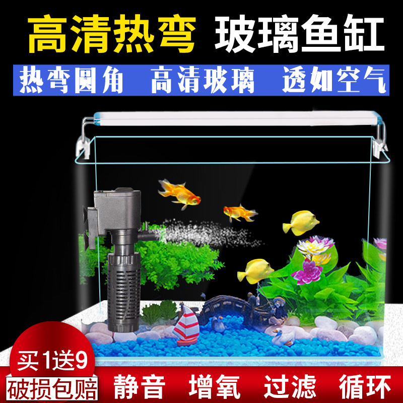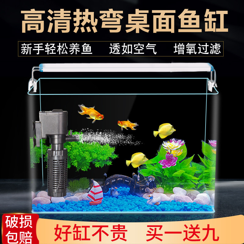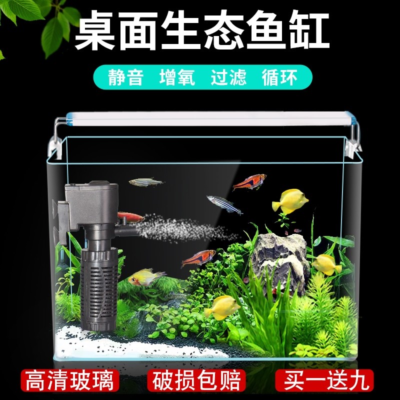 玻璃鱼缸家用客厅热弯一体金鱼缸生态水族箱小型迷你斗桌面增氧