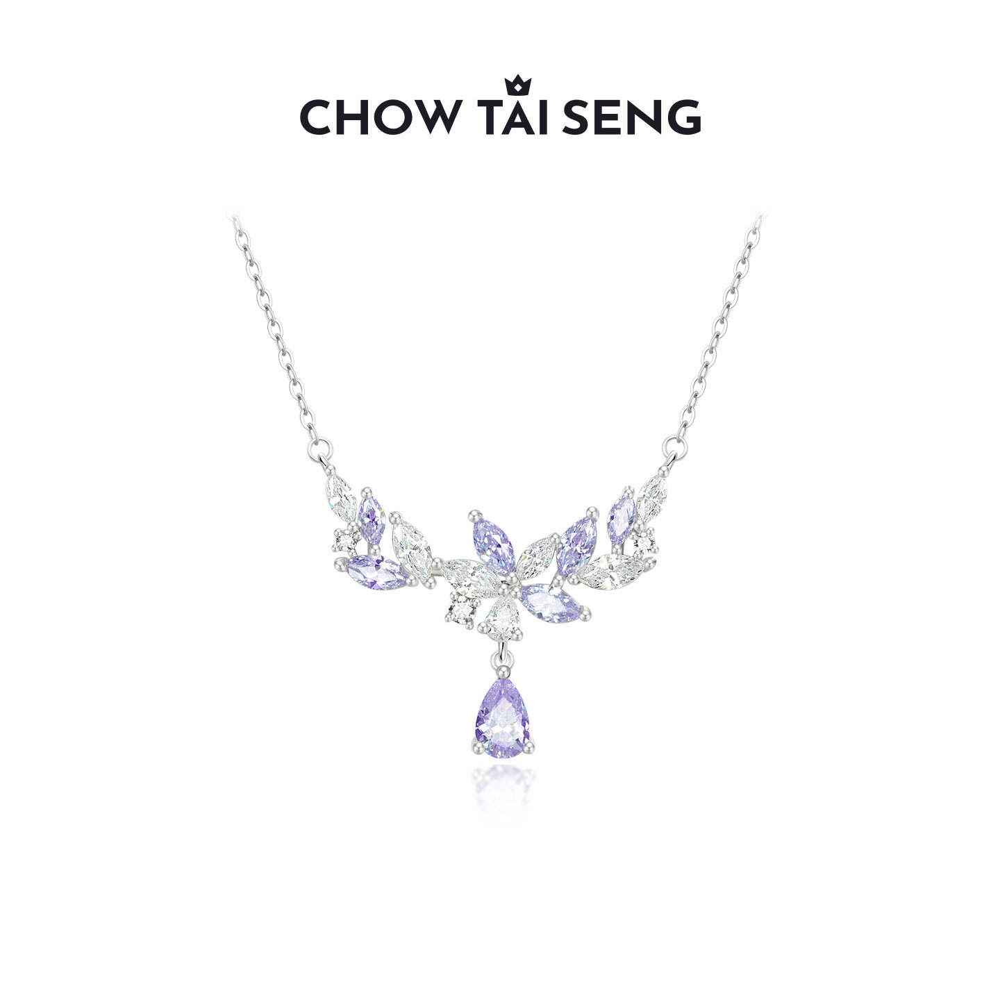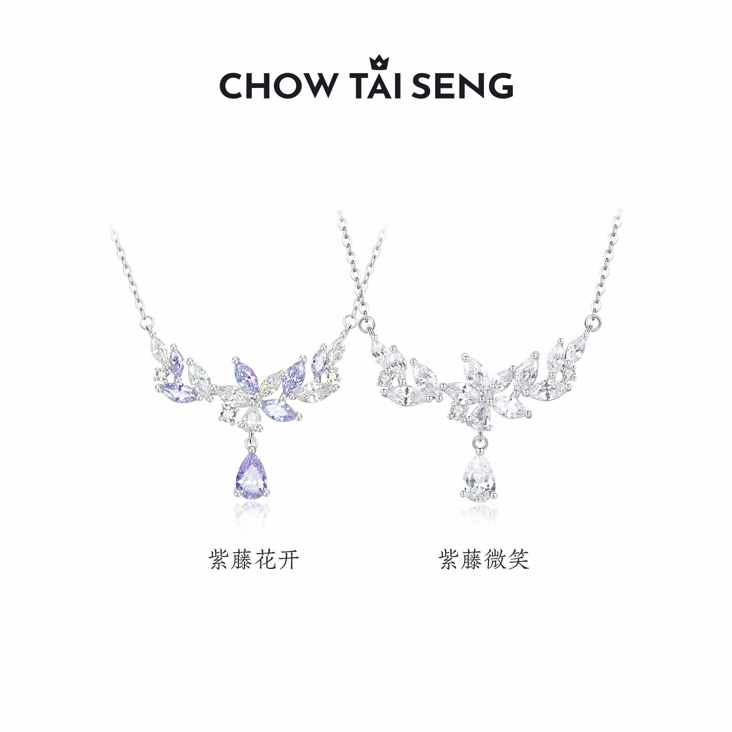 周大生紫藤花项链S925纯银轻奢小众高级感锁骨链新年节礼物送女友