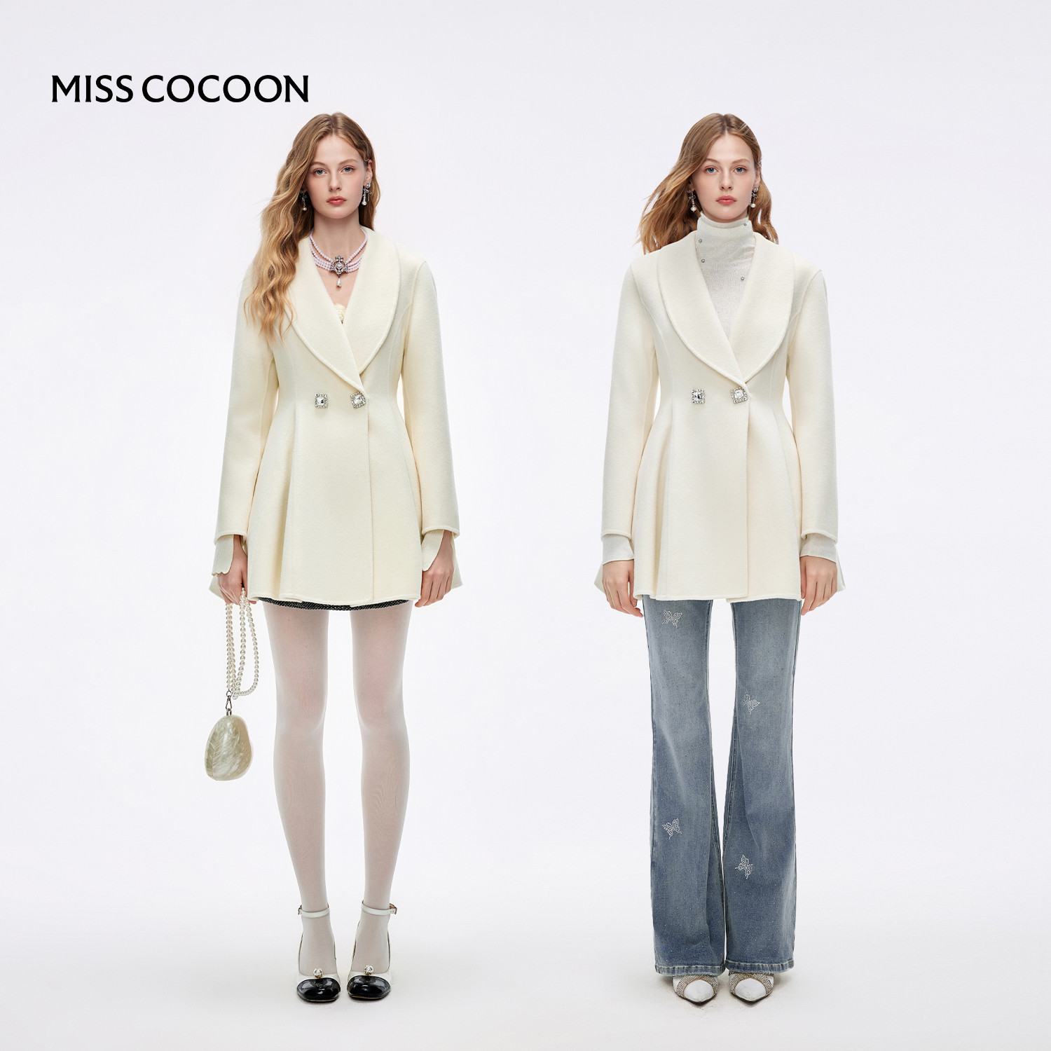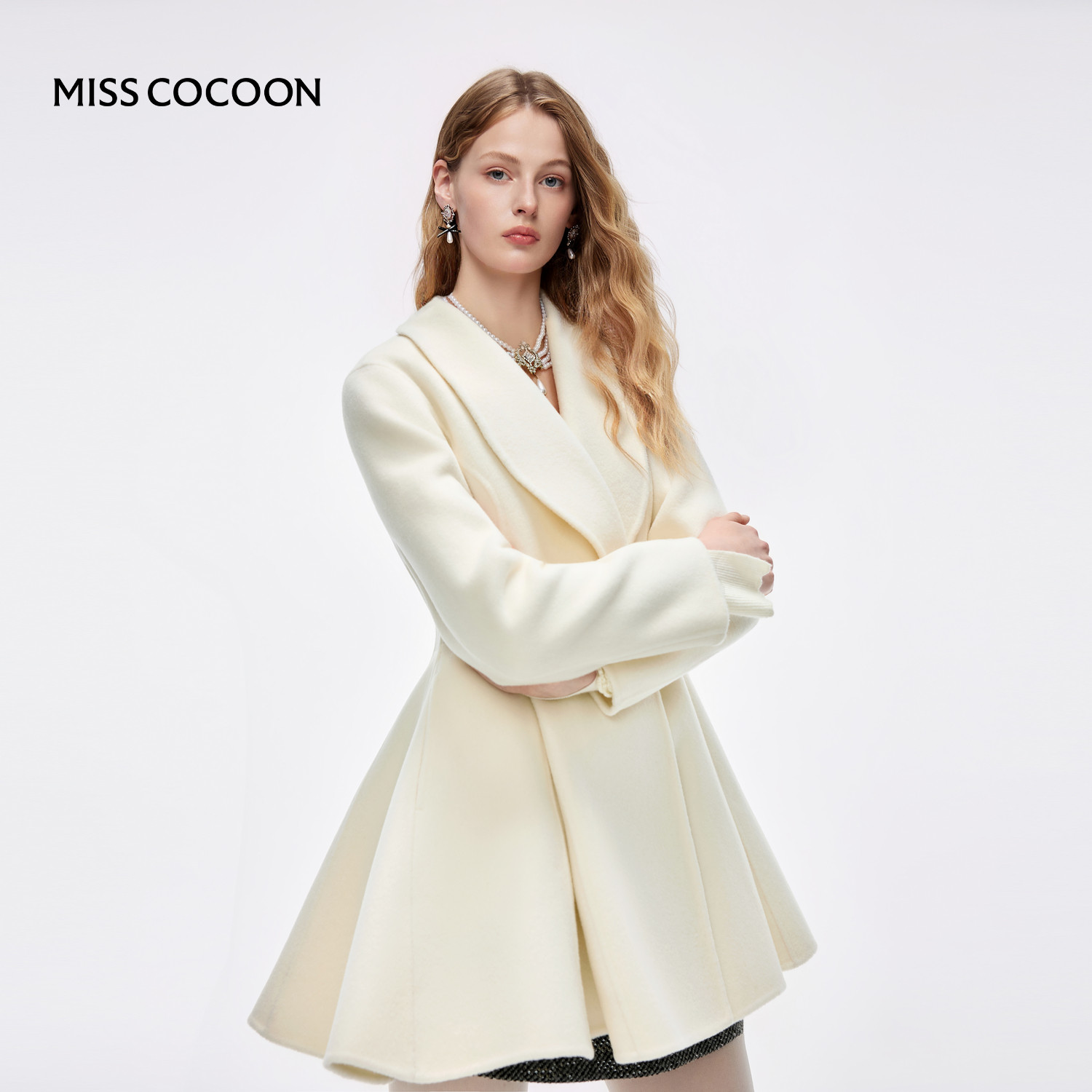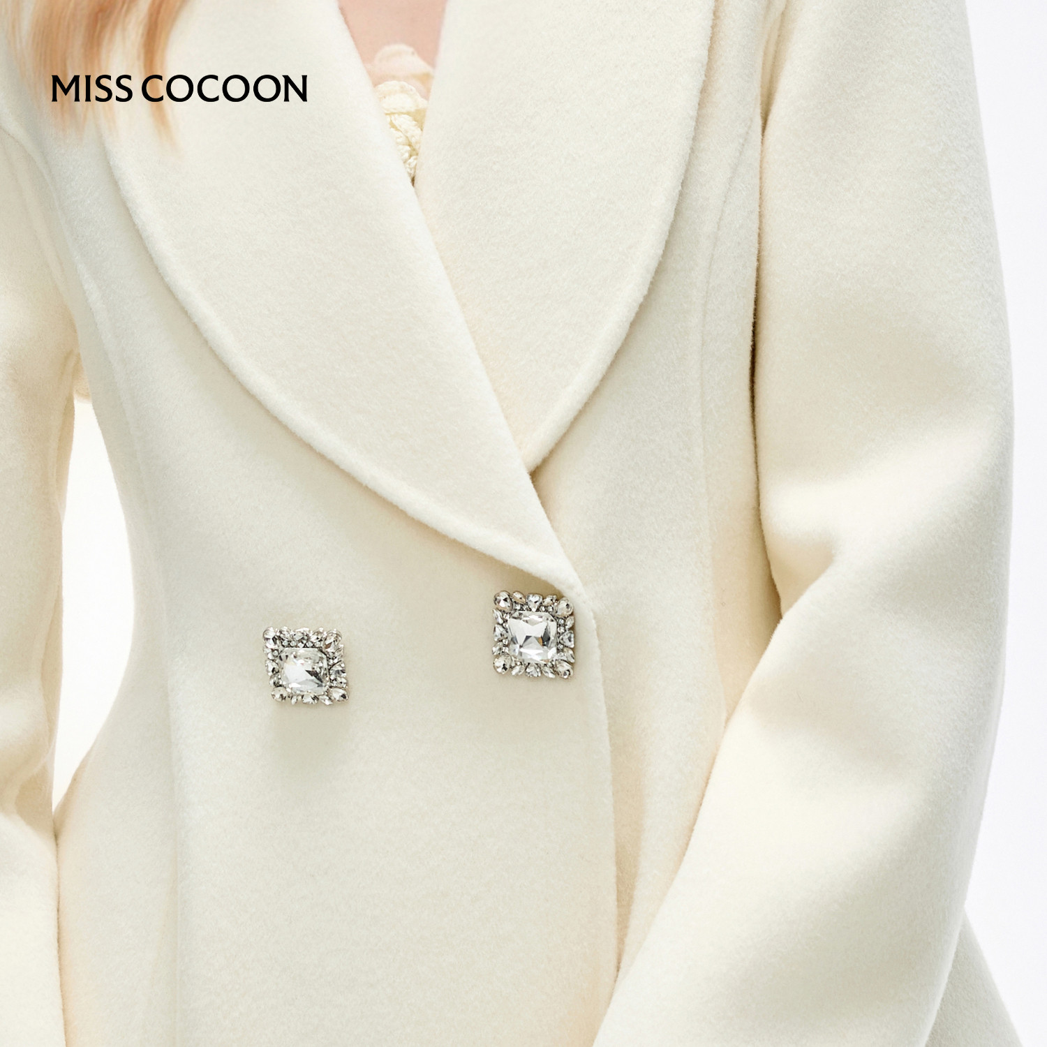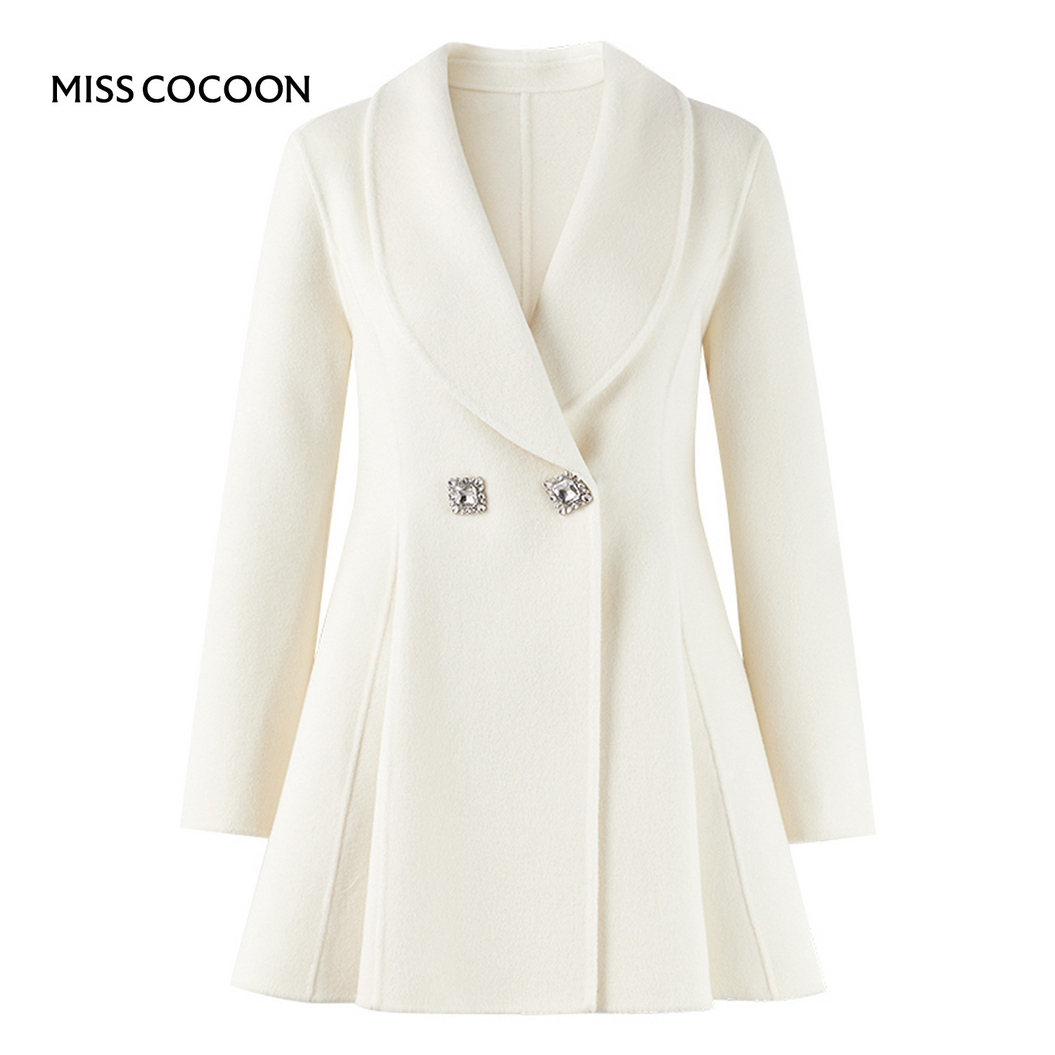 MISSCOCOON可可尼毛呢外套女2025冬季新款千金风绵羊毛白色外套