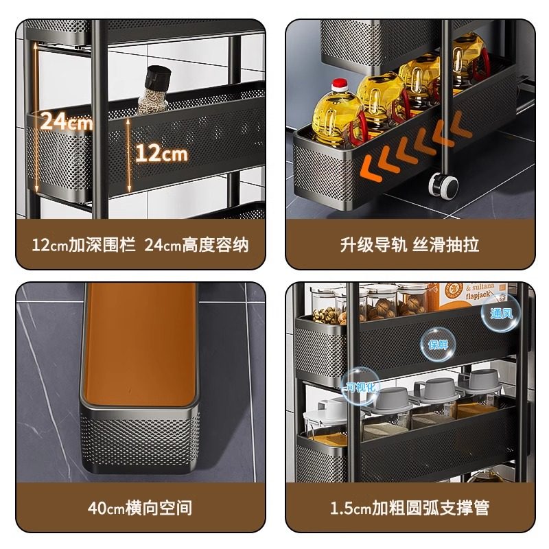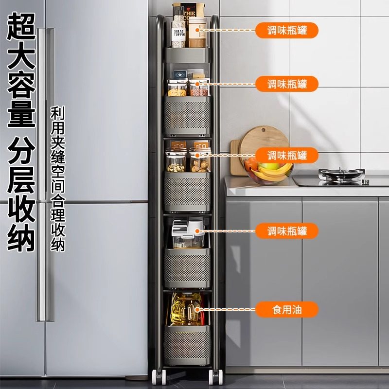 夹缝置物架厨房角落冰箱侧面极窄缝抽拉篮缝隙收纳柜卫生间小推车