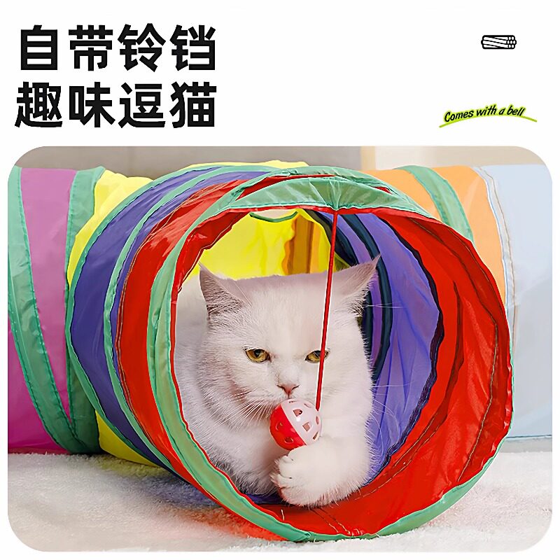 宠物玩具用品彩虹S型猫隧道自嗨貓玩具可折叠猫咪隧道猫猫静音
