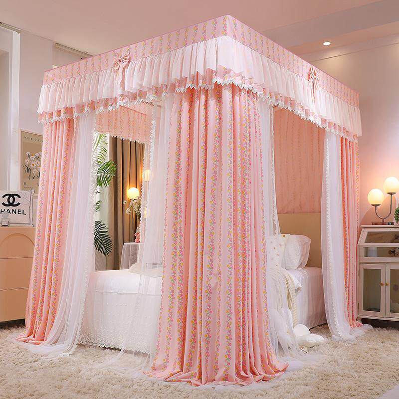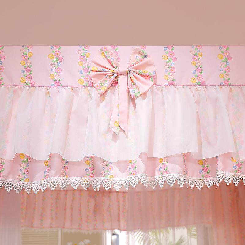 新款双层帐纱落地宫廷蚊帐双杆奶油风蕾丝遮光防蚊床幔蚊帐