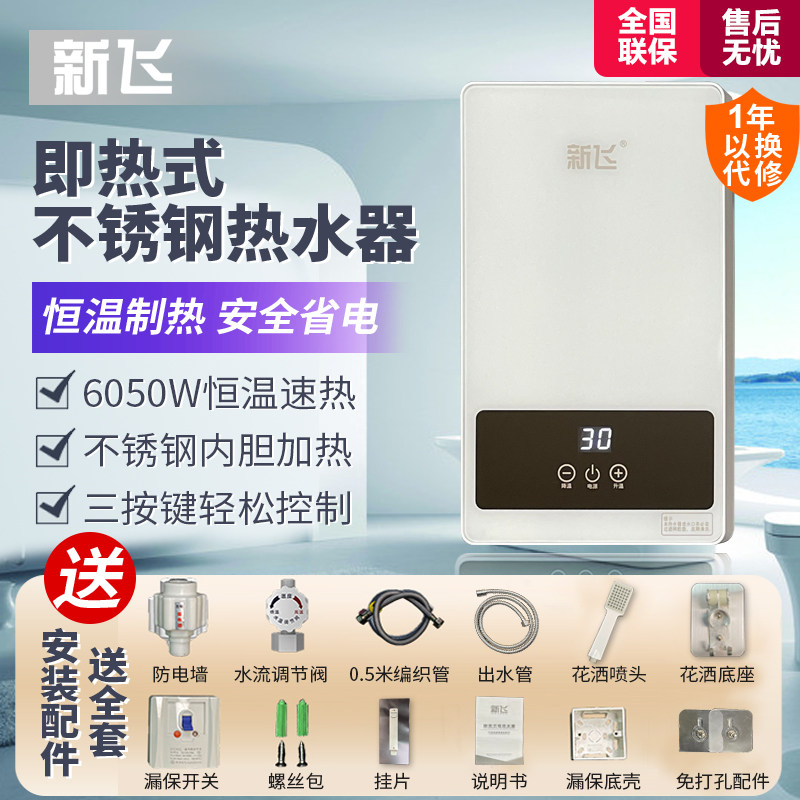 新飞即热式电热水器速热式家用淋浴恒温变频卫生间快速小型洗澡