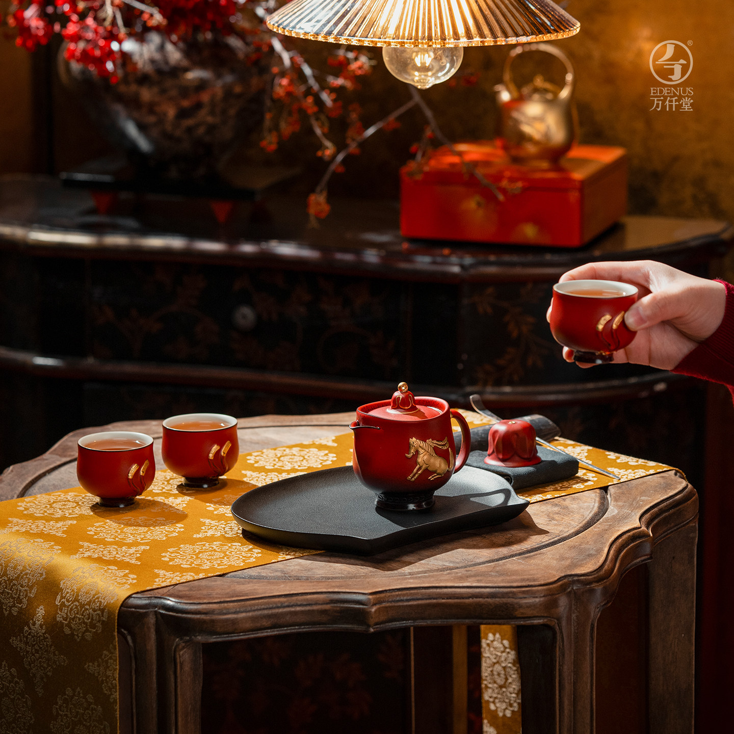 万仟堂联名陕历博功夫茶具套装马年陶瓷高档轻奢茶具礼盒舞马衔杯
