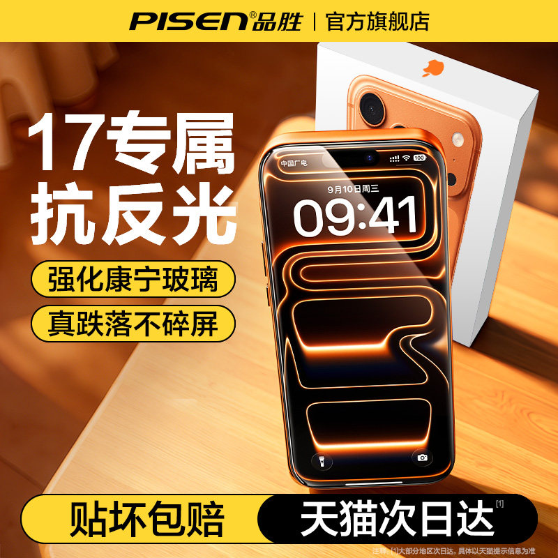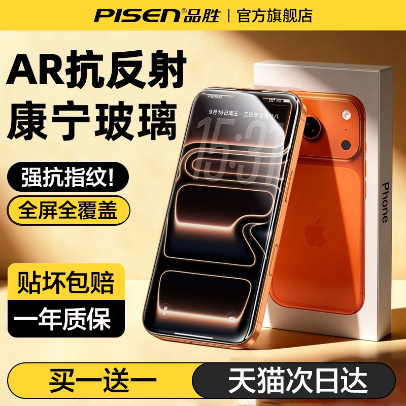【AR康宁膜】品胜适用iPhone17ProMax钢化膜苹果16/15Pro手机14贴膜13全屏Air高清12防摔保护抗反射新款热弯x