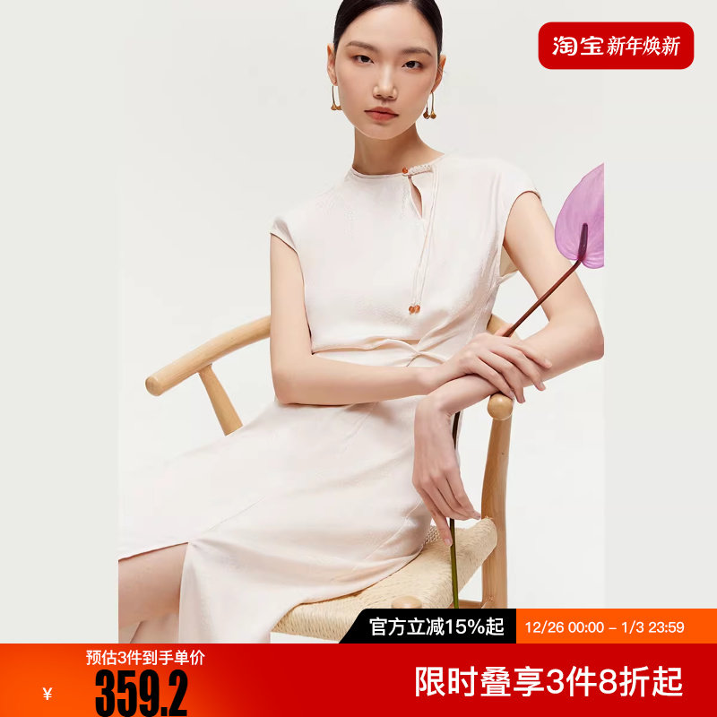 绫致Vero Moda连衣裙25冬盘扣扭结修身收腰旗袍新中式两件套