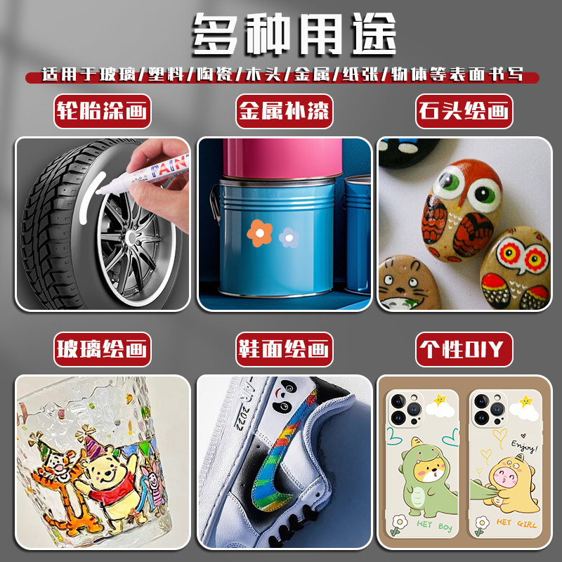 黑色油漆笔防水防油工业不掉色加粗家具修补模型补漆笔黑笔油性记号笔汽车轮胎专用涂鸦笔大头笔金属马克笔