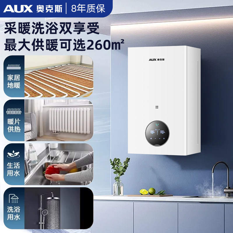 奥克斯燃气壁挂炉采暖热水两用天然气家用地暖锅炉冷凝一级能效