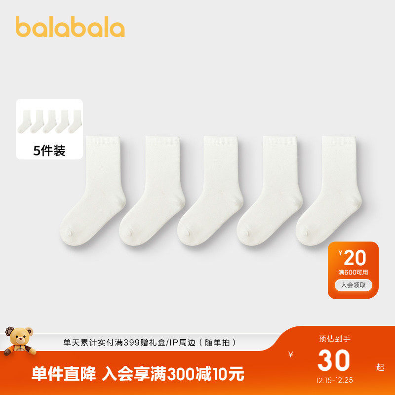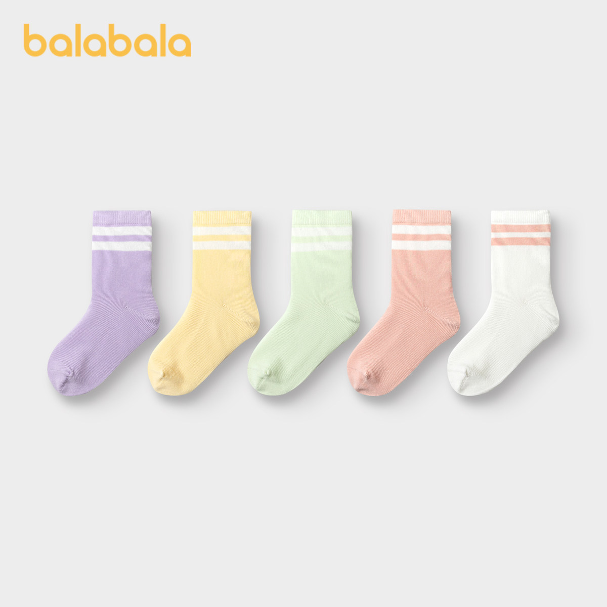 巴拉巴拉儿童袜子春秋季新款男童棉袜女童打底袜小中中筒五双装潮