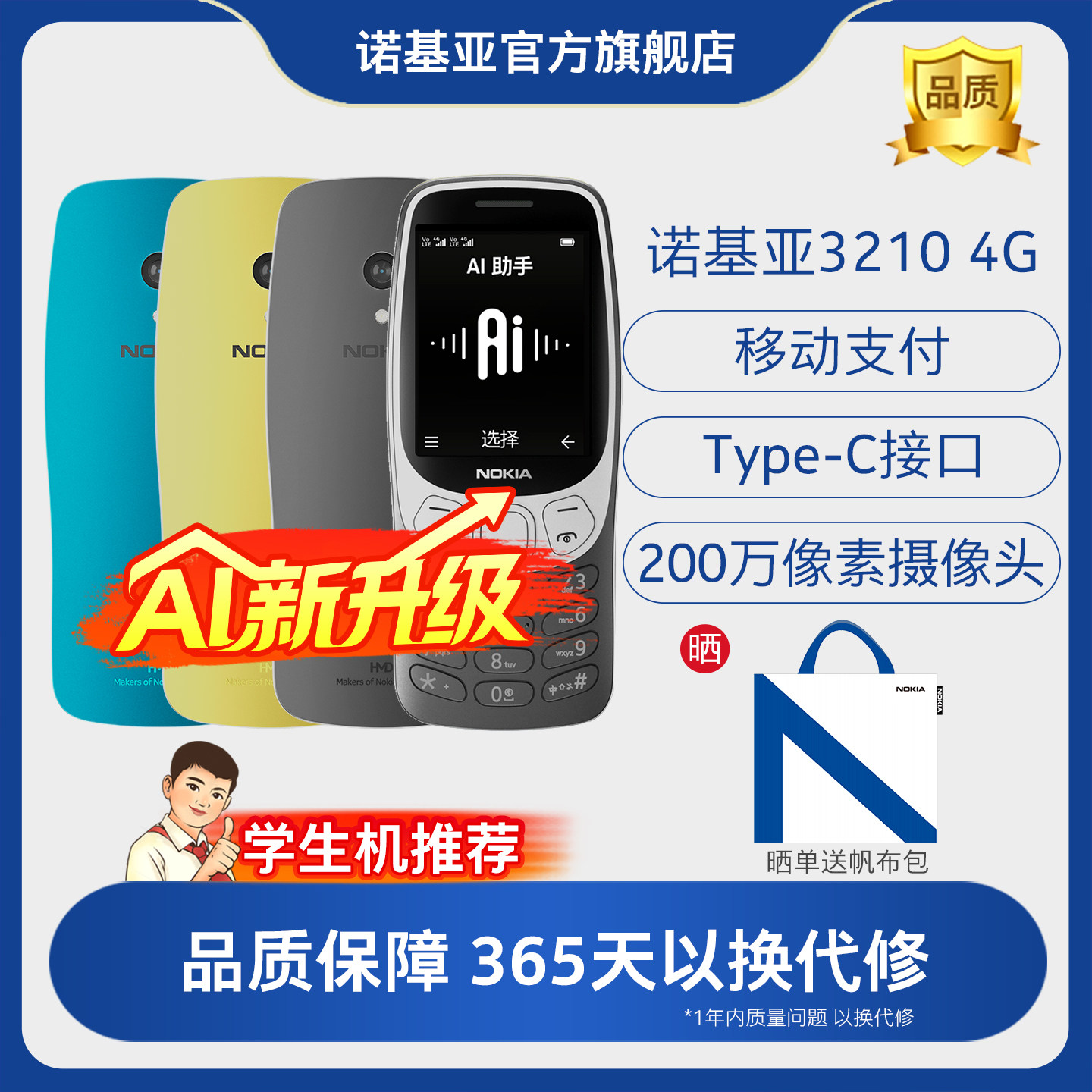 【学生手机推荐】诺基亚3210 4G全网通学生备用机手机按键学生戒网功能备用官方旗舰店官网2024新款