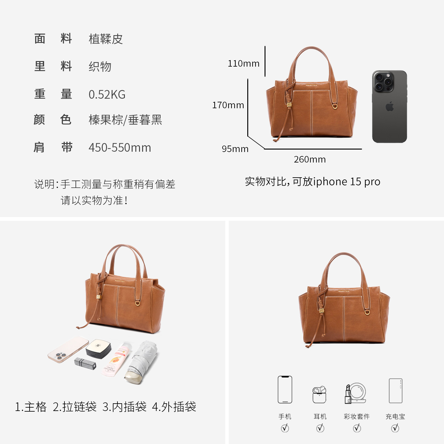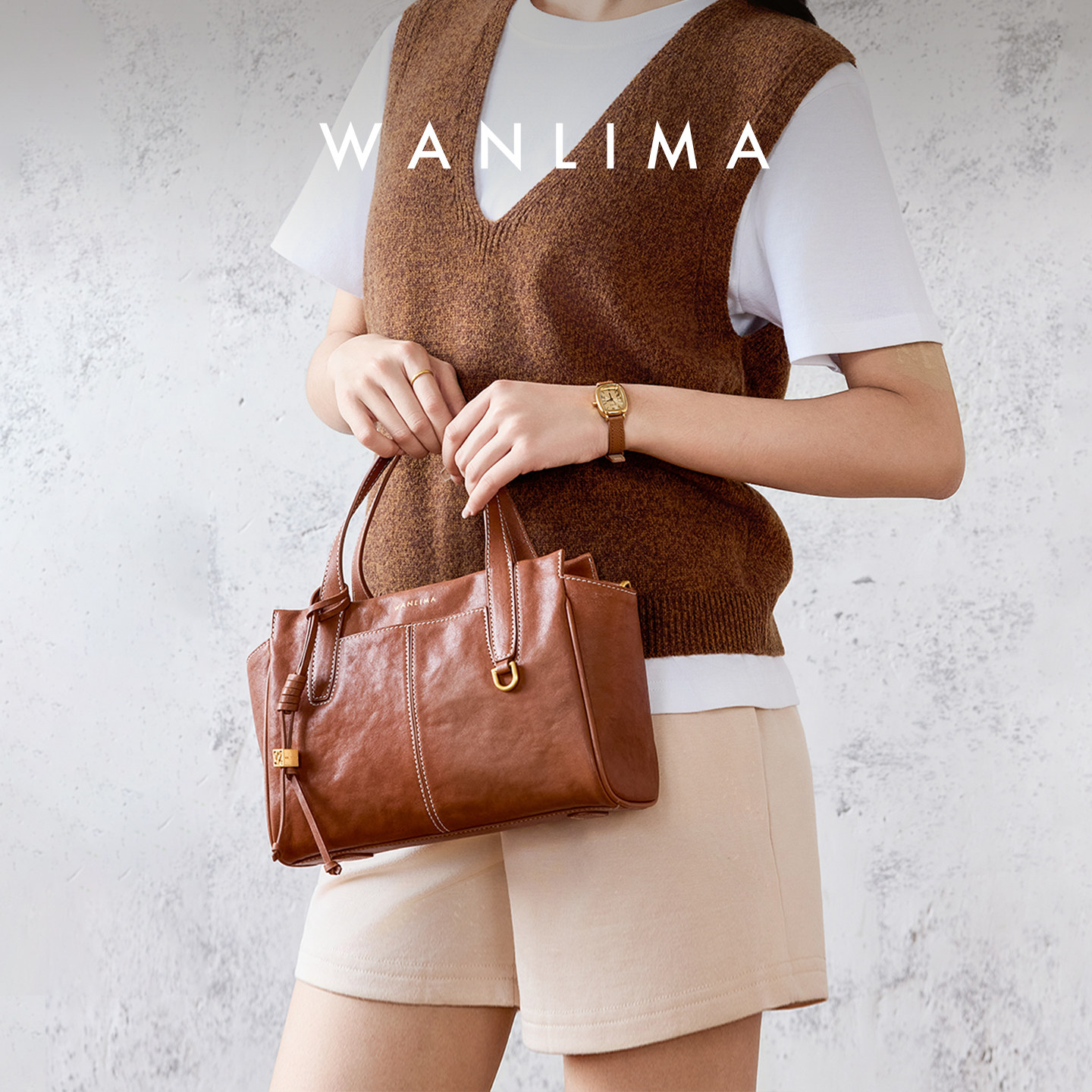 Wanlima/万里马包包女士2026新款小托特包通勤包植鞣皮单肩斜挎包