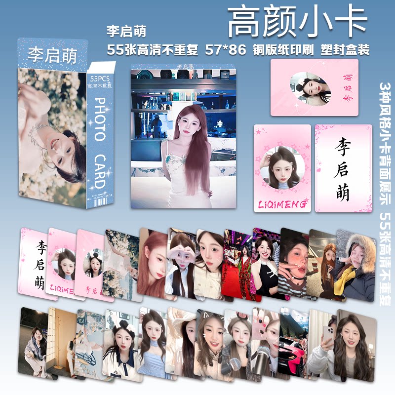 快手网红李启萌55张自印小卡应援周边礼盒收藏写真卡明信片礼物