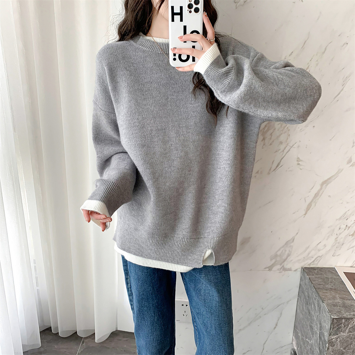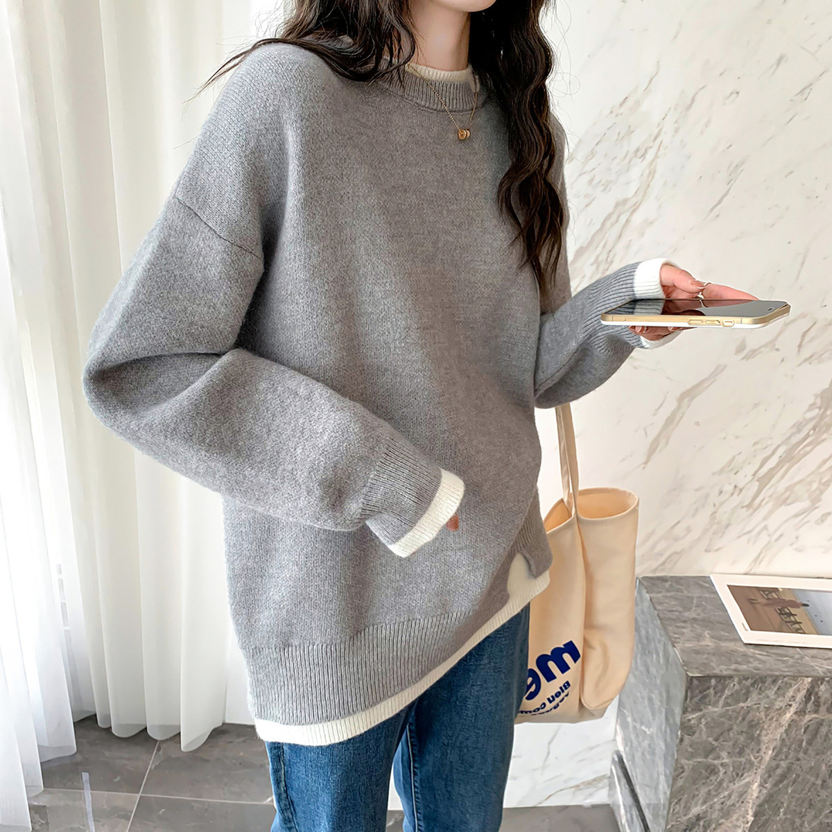 oversize!慵懒撞色水貂绒套头毛衣女秋季新款韩版宽松加厚针织衫