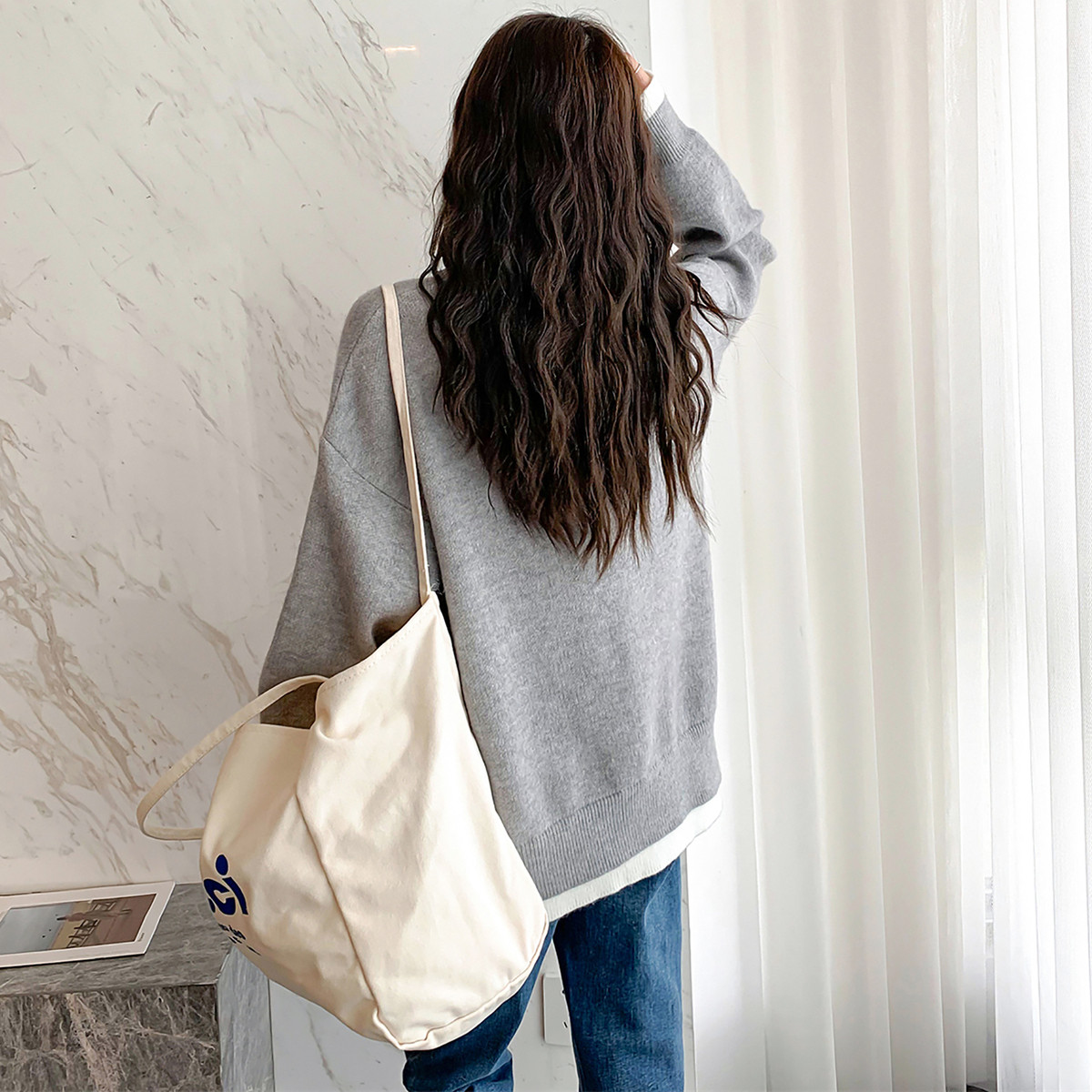 NVPVVA 秋冬百搭LOGO米粒绣圆领毛衣韩系宽松慵懒风针织衫上衣女