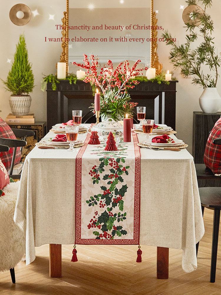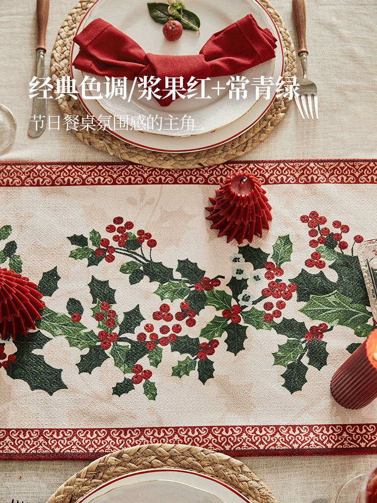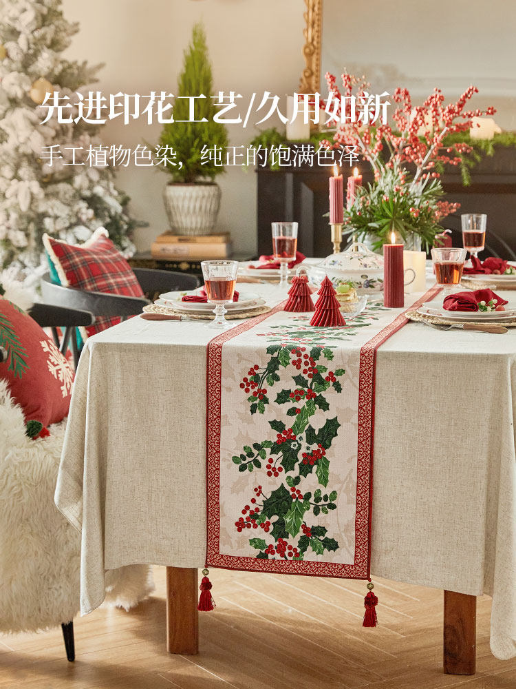 蜡笔派圣诞颂歌桌旗节日喜庆新婚氛围轻奢复古红色盖布茶旗茶几布