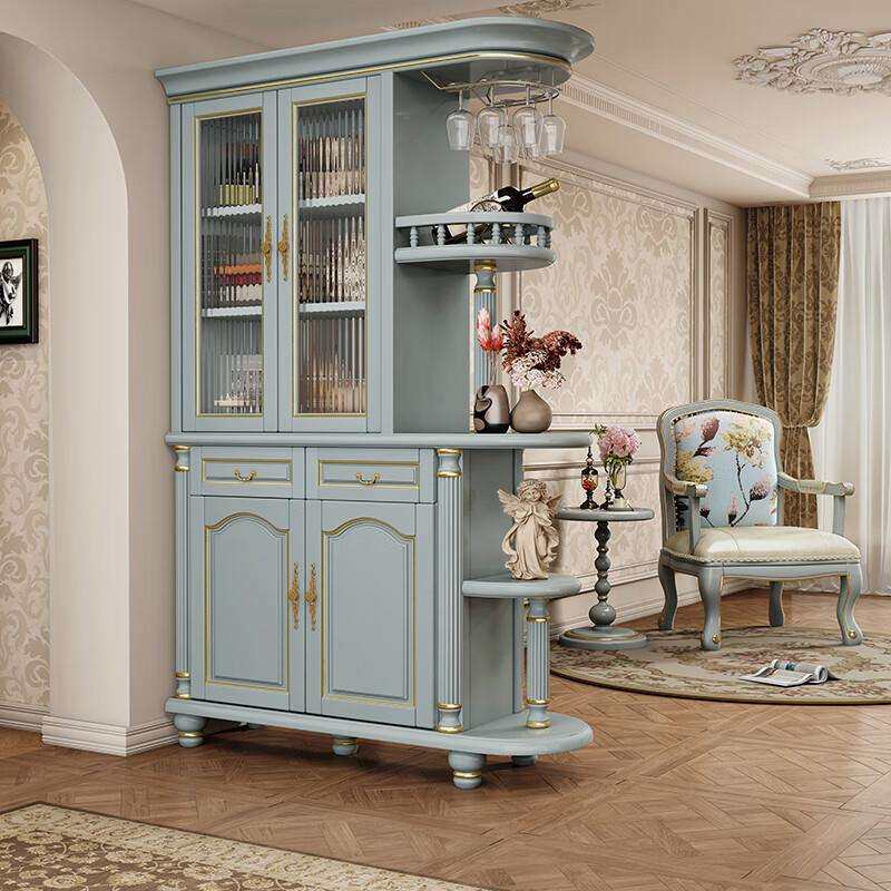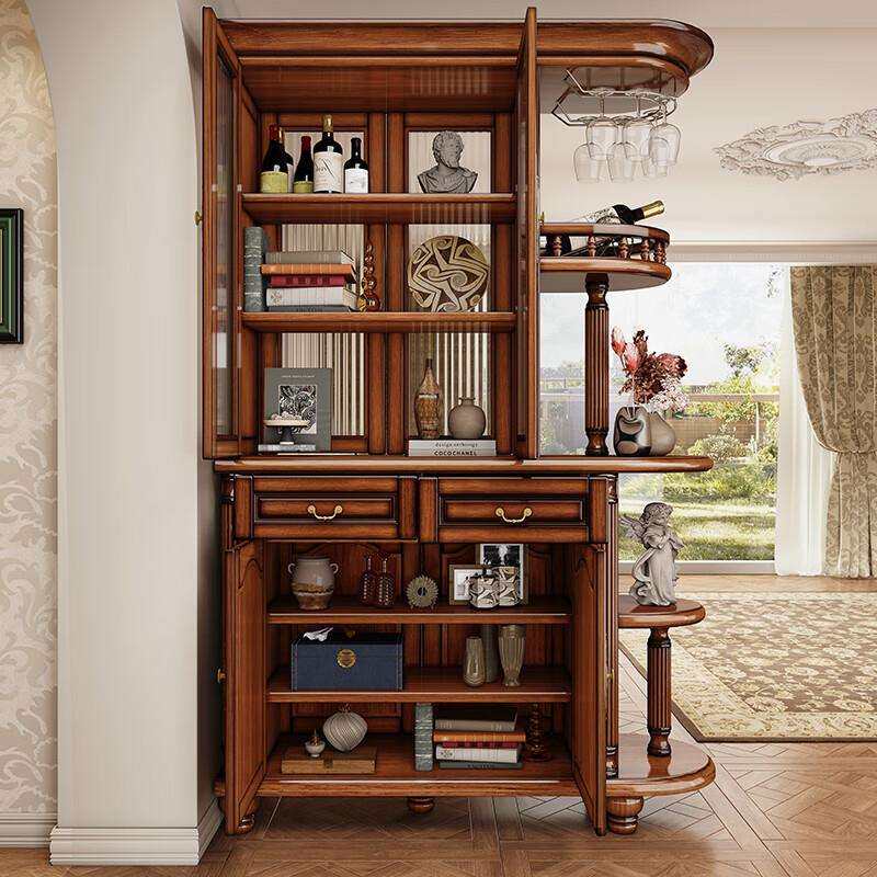 美式实木间厅柜复古酒柜收纳门厅双面玄关柜客厅隔断轻奢餐边柜子