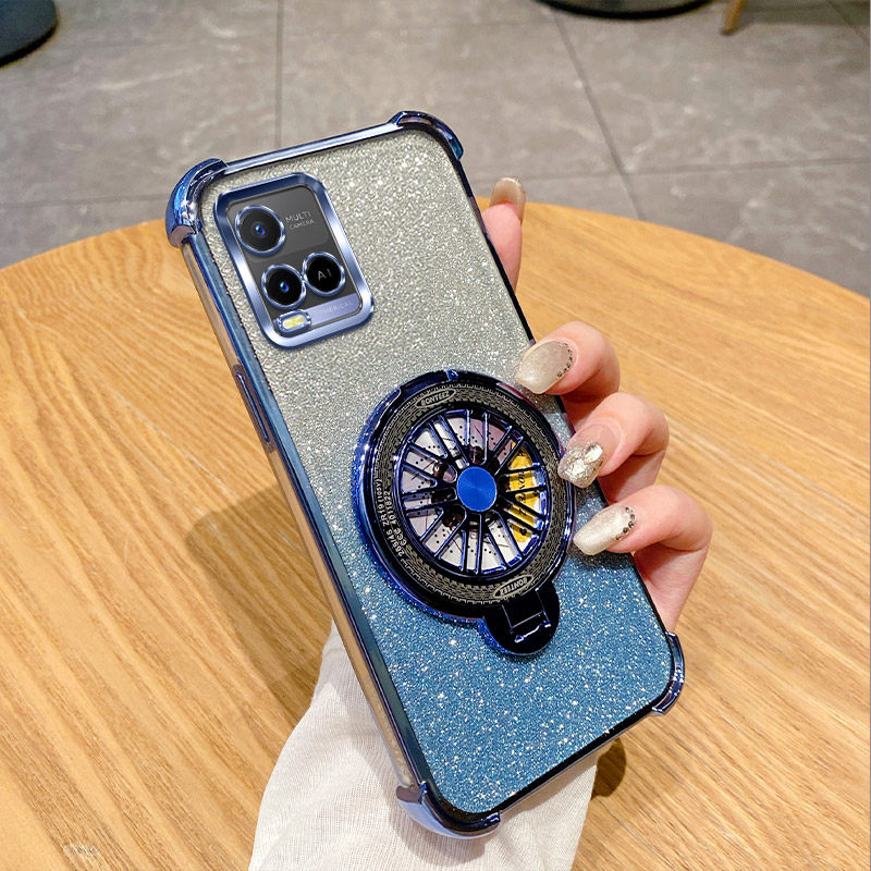 vivoY21手机壳新款闪粉时尚软壳适用vivoY21s磁吸旋转陀螺支架解压高级感全包创意超薄奢华Y32气囊防摔保护套