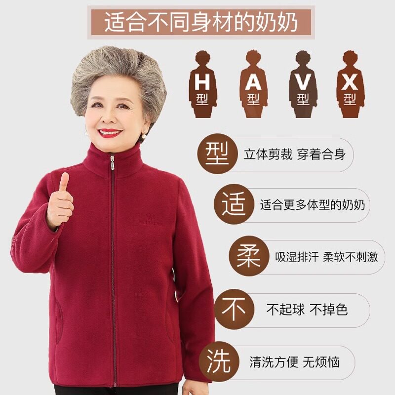 中老年人卫衣摇粒绒外套女妈妈冬装加绒春秋抓绒衣服女装上衣休闲