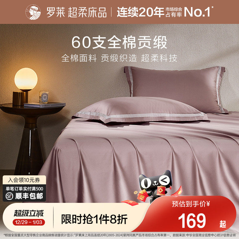罗莱家纺全棉贡缎拆件单件枕套纯棉学生宿舍换洗床单三件套单人
