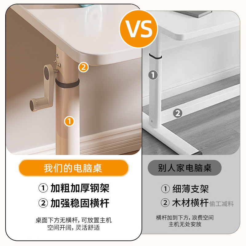 电脑桌台式可升降家用卧室床边桌学生学习桌书桌办公桌手摇童年