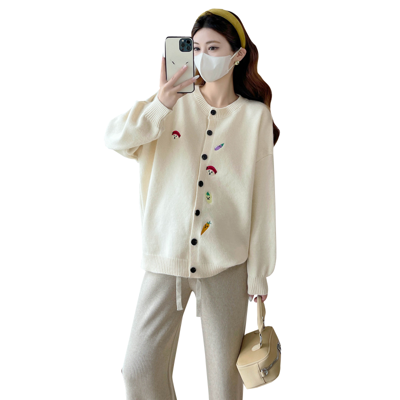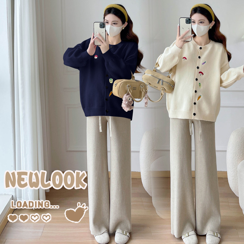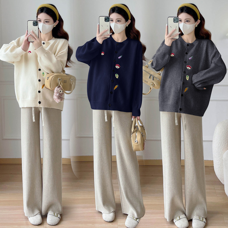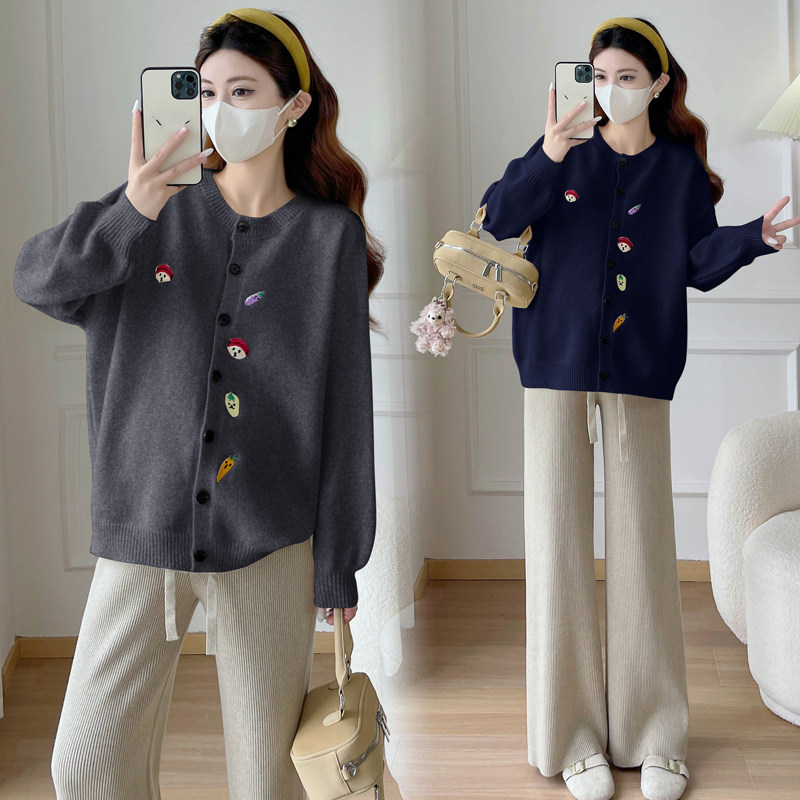婧麒孕妇装毛衣2025新款秋冬季百搭圆领休闲卡通刺绣针织开衫外套