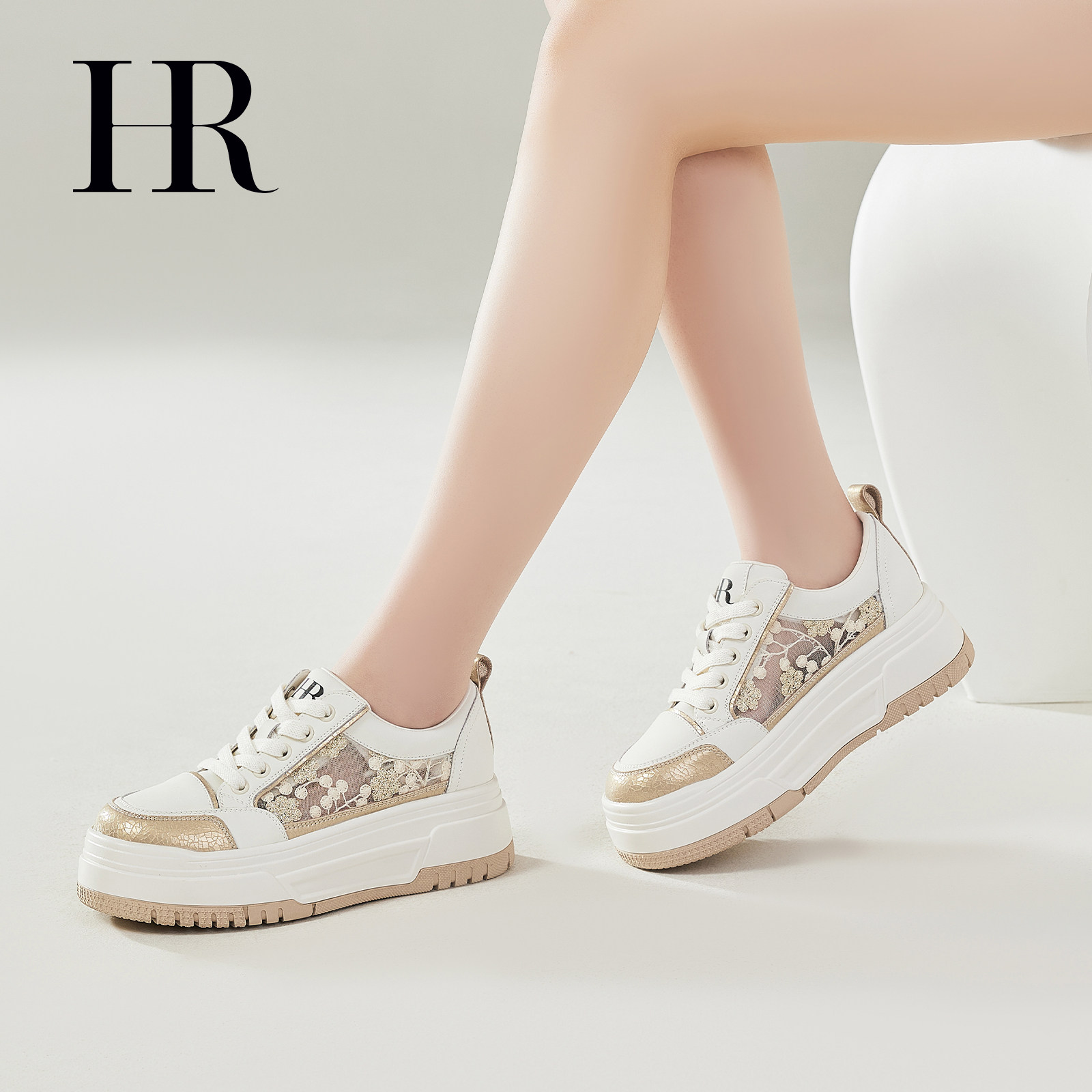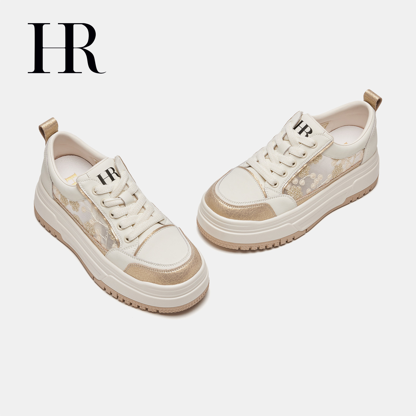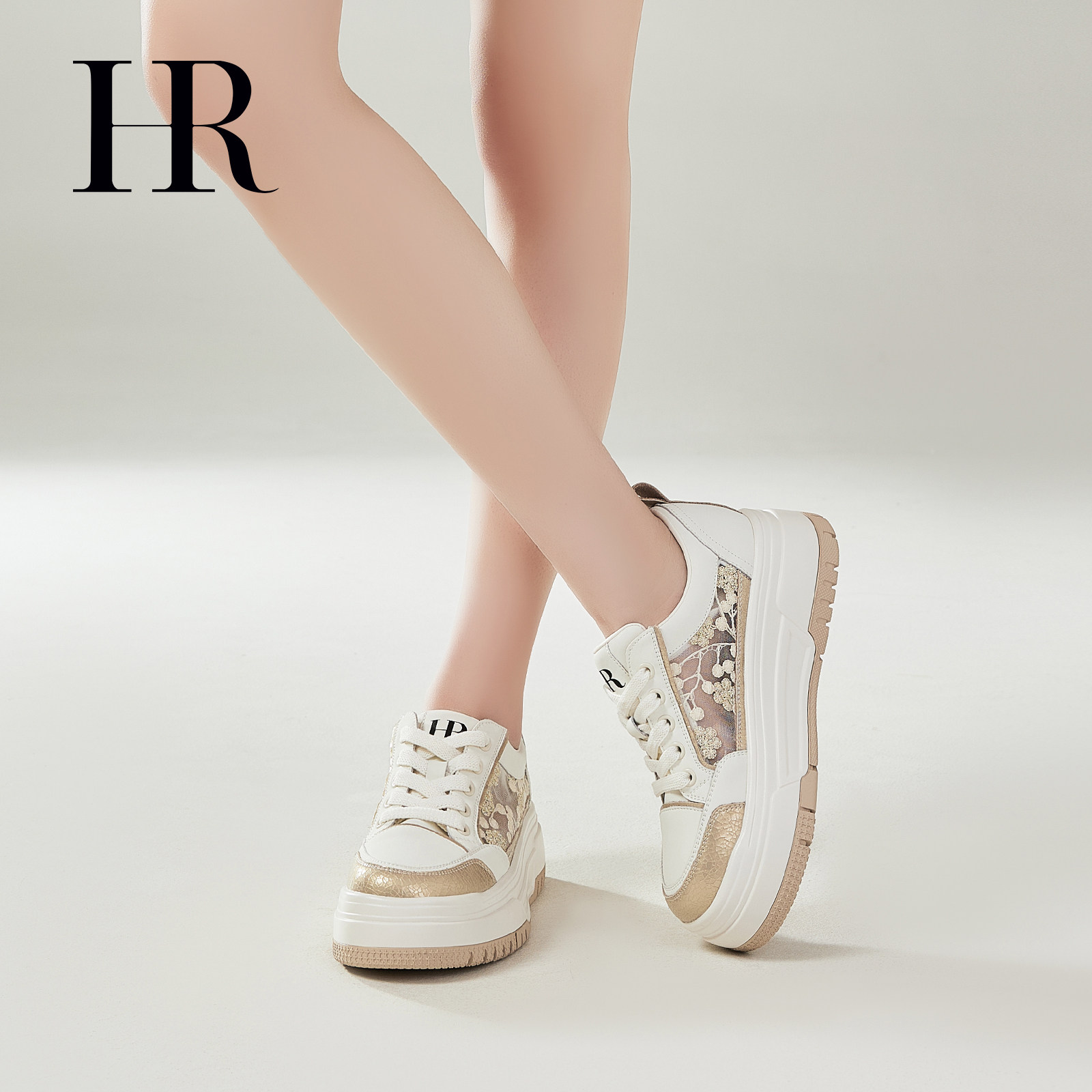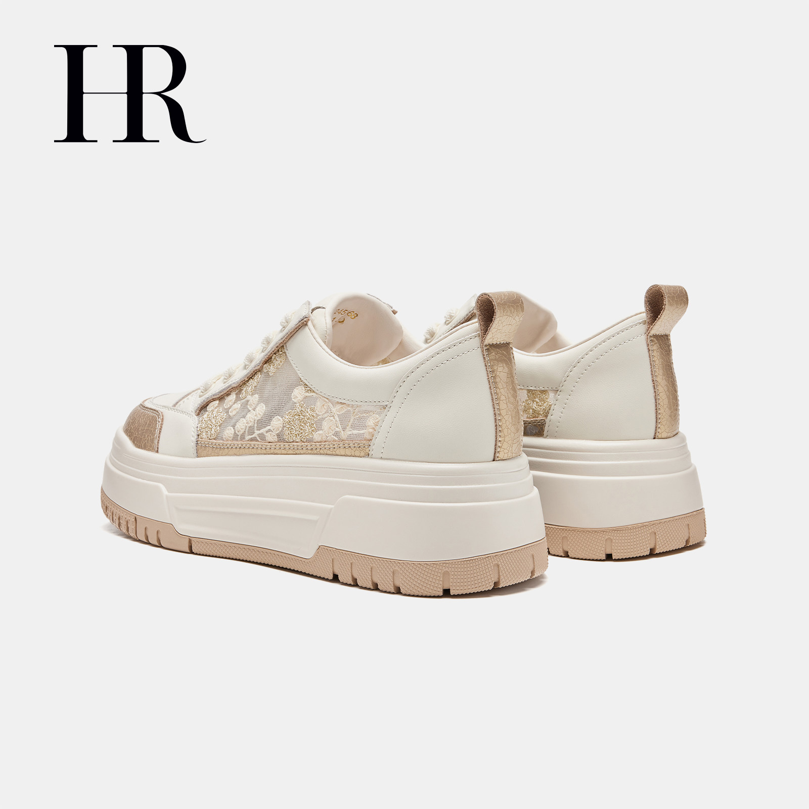 HR赫莲娜板鞋2025夏季新款网面女鞋子厚底国风刺绣网纱透气运动鞋