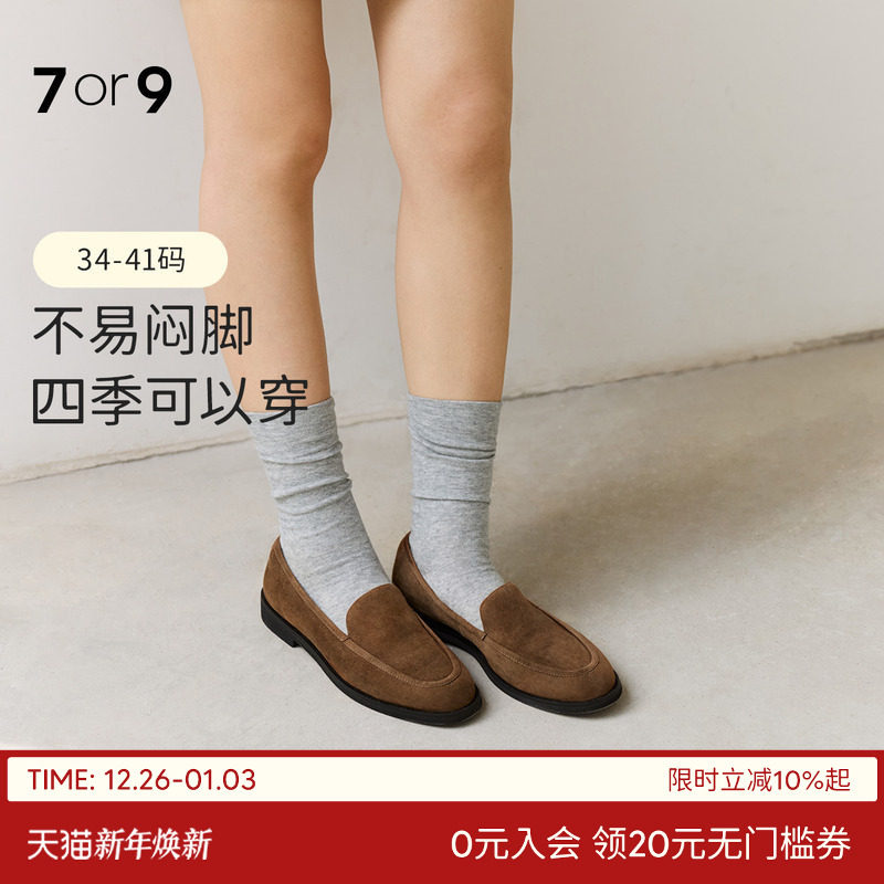 吴千语同款7or9乐福鞋不累脚女鞋小皮鞋老钱风一脚蹬单鞋焦糖芋泥