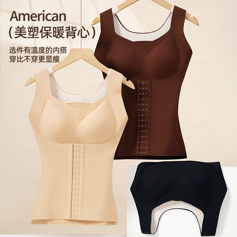 秋冬山茶花保暖背心女带胸垫磨毛收腹美体打底内衣女文胸内搭塑形