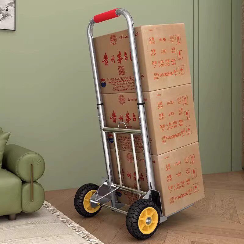304不锈钢手推车平板搬运车拉货家用静音折叠小推车水产海鲜拖车