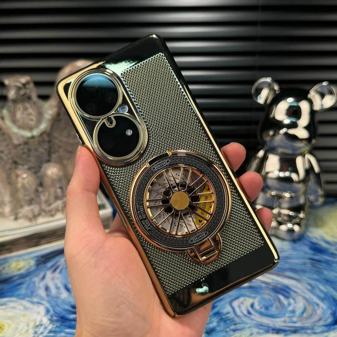 解压陀螺支架适用华为P50Pro手机壳新款电镀网格散热壳P50高级感带镜头膜男士女手机套P50E超薄防摔透气外壳