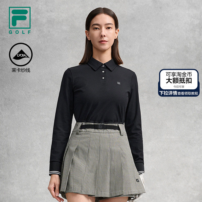 FILA 斐乐官方女子针织长袖POLO衫2026春新款高尔夫运动基础上衣