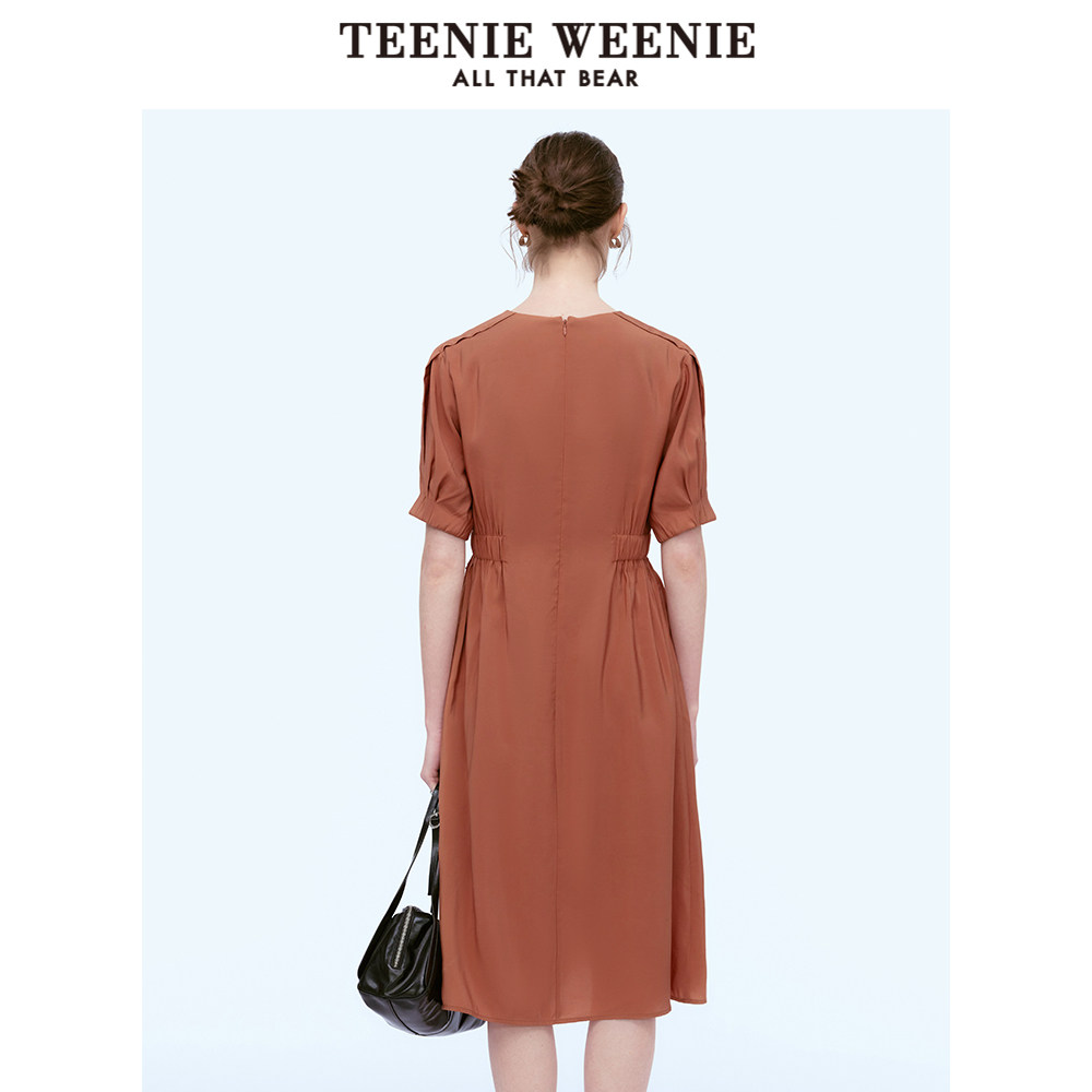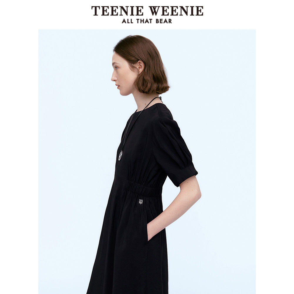 TeenieWeenie小熊奥莱夏装圆领松紧收腰长款短袖A字连衣裙女