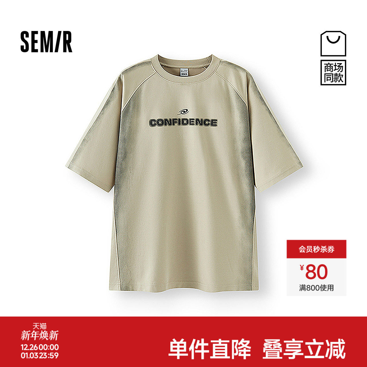 [商场同款]森马短袖T恤男运动风插肩袖上衣宽松印花夏装2025新款