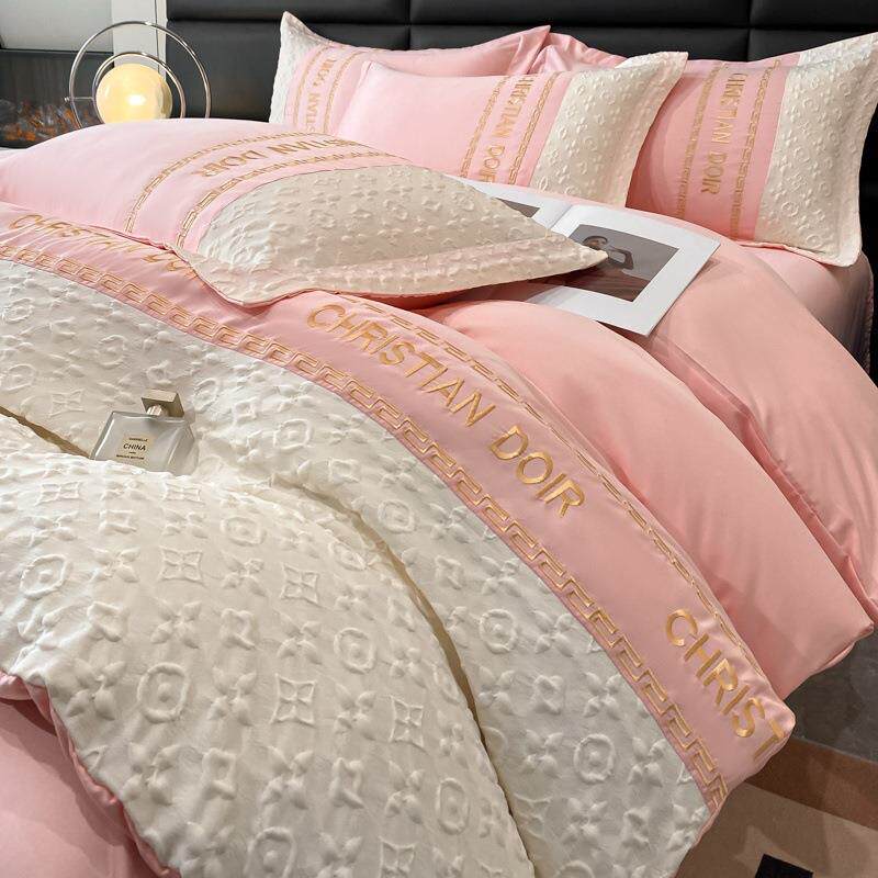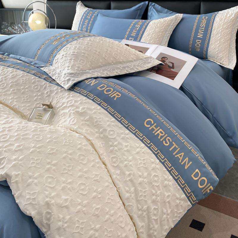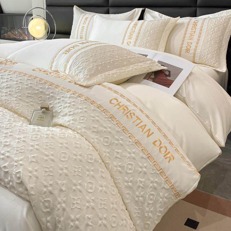 夏季轻奢风凉感冰丝四件套丝滑裸睡浮雕水洗真丝被罩床单床上用品