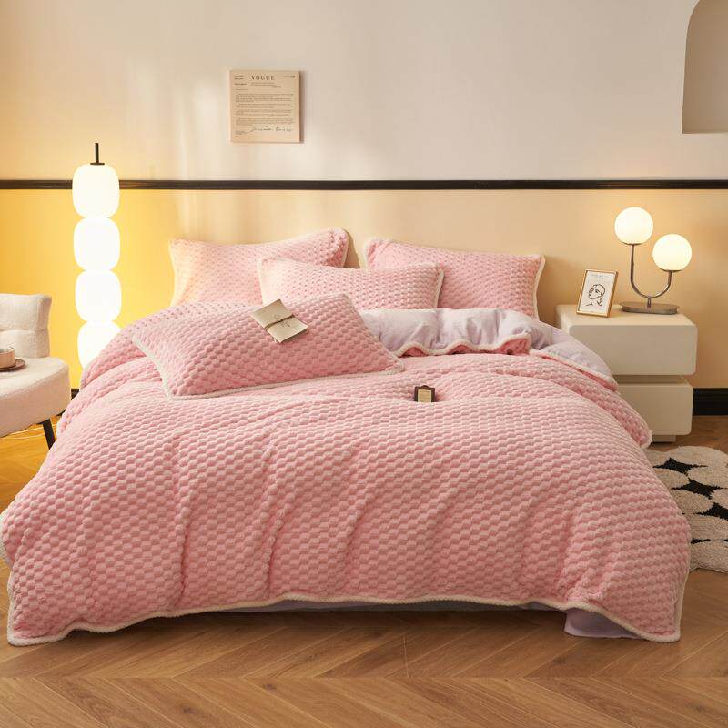 新款床单被套床上用品大豆豆绒可拆洗冬被通用型三件套四件套