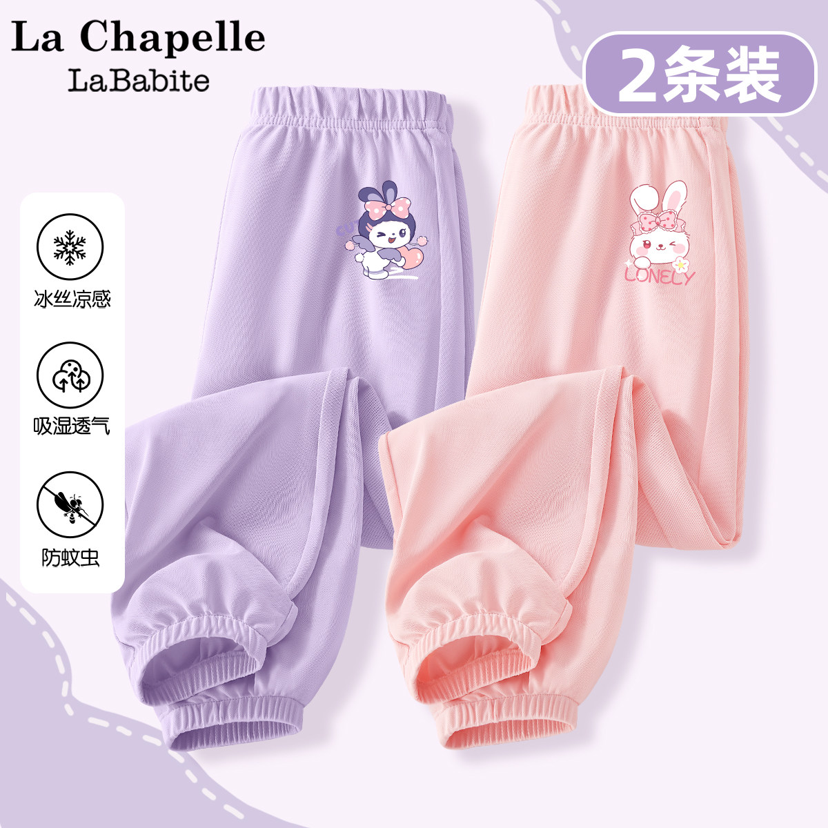拉夏贝尔联名女童夏季裤子薄款2025新款夏装运动裤冰丝儿童防蚊裤