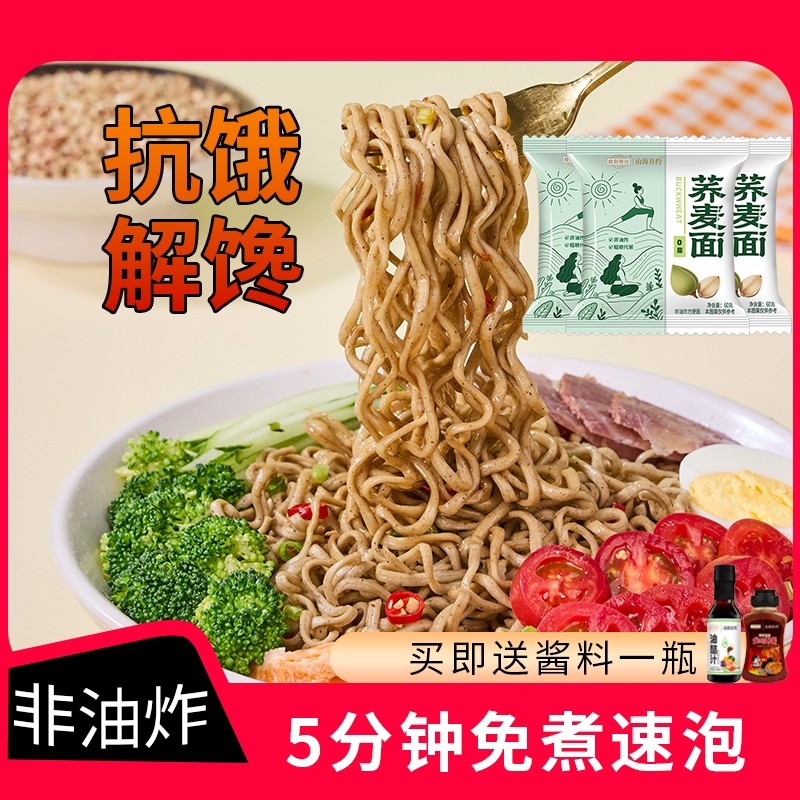 0脂肪荞麦面方便面减泡面低脂粗粮免煮全面条主食无糖精代餐食品
