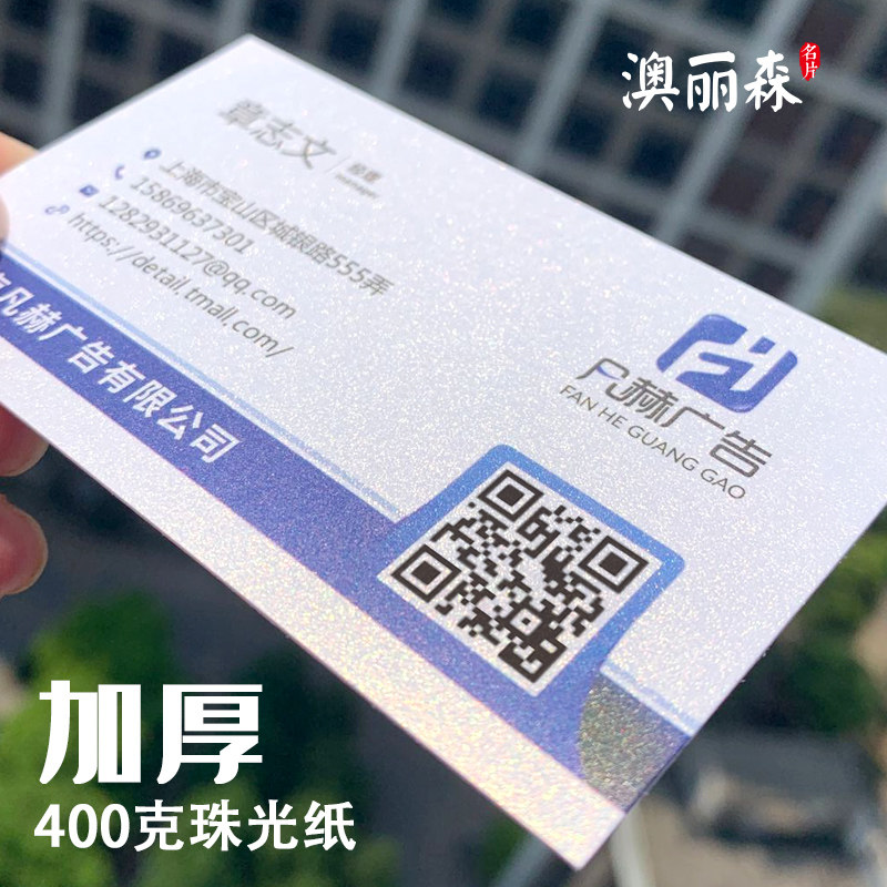 彩色 定制商务名片 设计 制作 艺术纸 加厚40B0克冰白珠光纸 珍珠