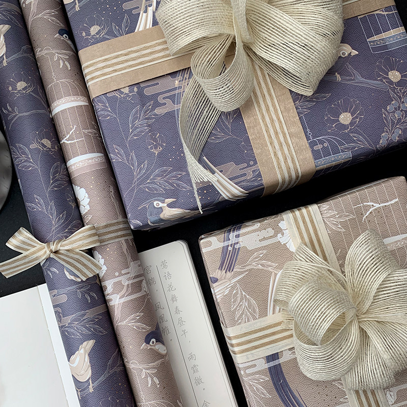 现货原创闻春复古中式精致宫廷鸟雀鸟笼印金包装纸退休教师节礼物
