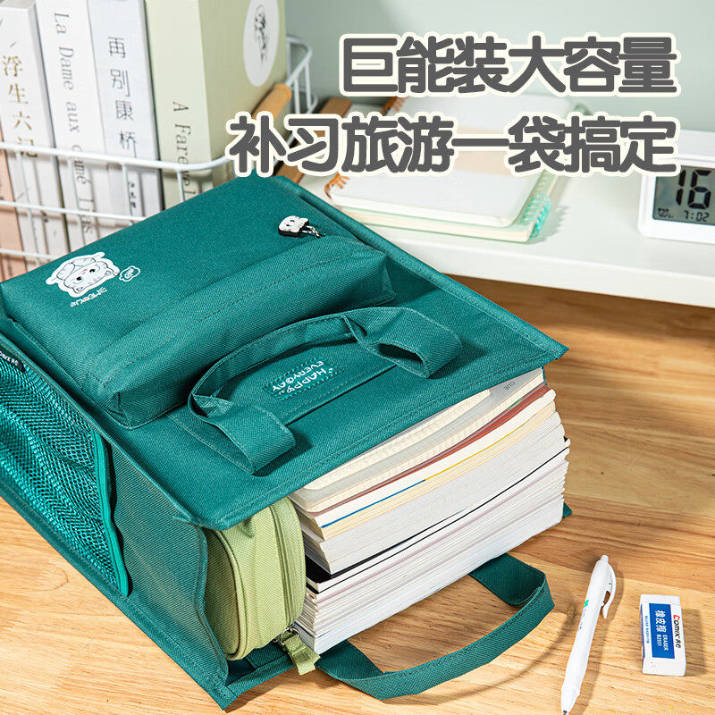 齐心学生补习袋学习手提袋熊猫卡通拎书袋小学生补习包儿童帆布女生补课包文件补习袋美术袋