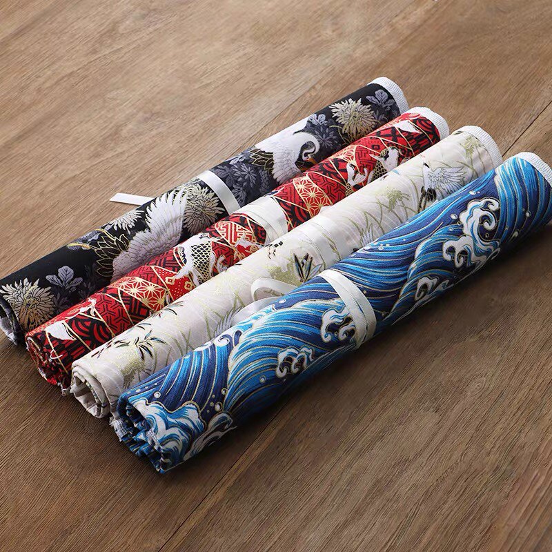 毛笔笔帘古风国潮帆布包边布艺竹制笔帘创意精美便携笔袋收纳帘