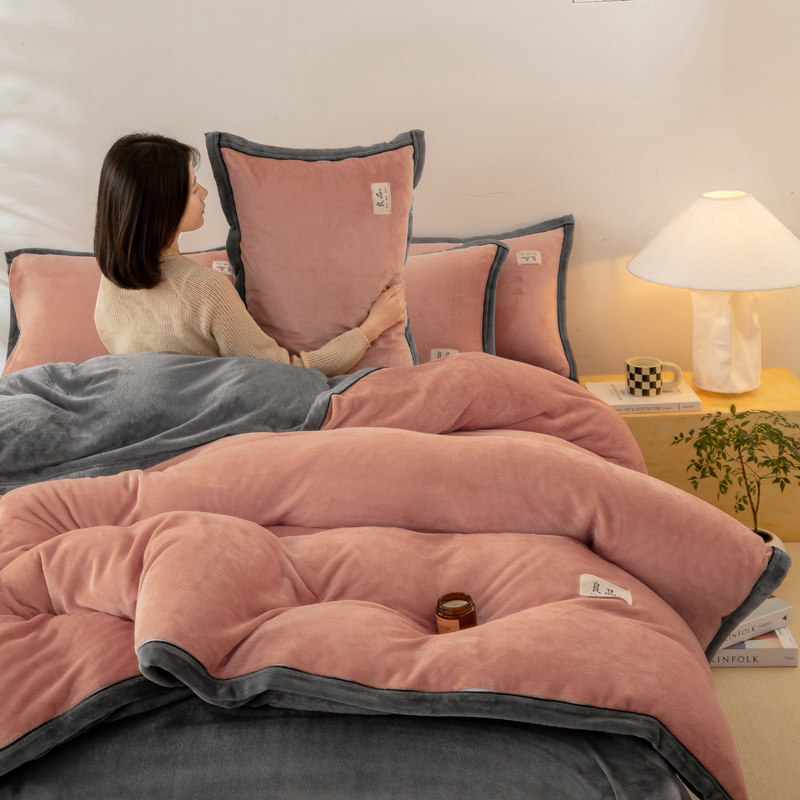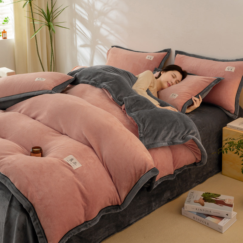 冬季加绒被套单件牛奶绒珊瑚绒宿舍单人单独毛绒被罩1.5米四件套3