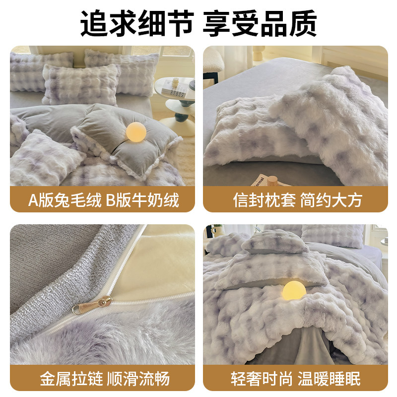 冬季加绒被套单件牛奶绒珊瑚绒宿舍单人单独毛绒被罩1.5米四件套3