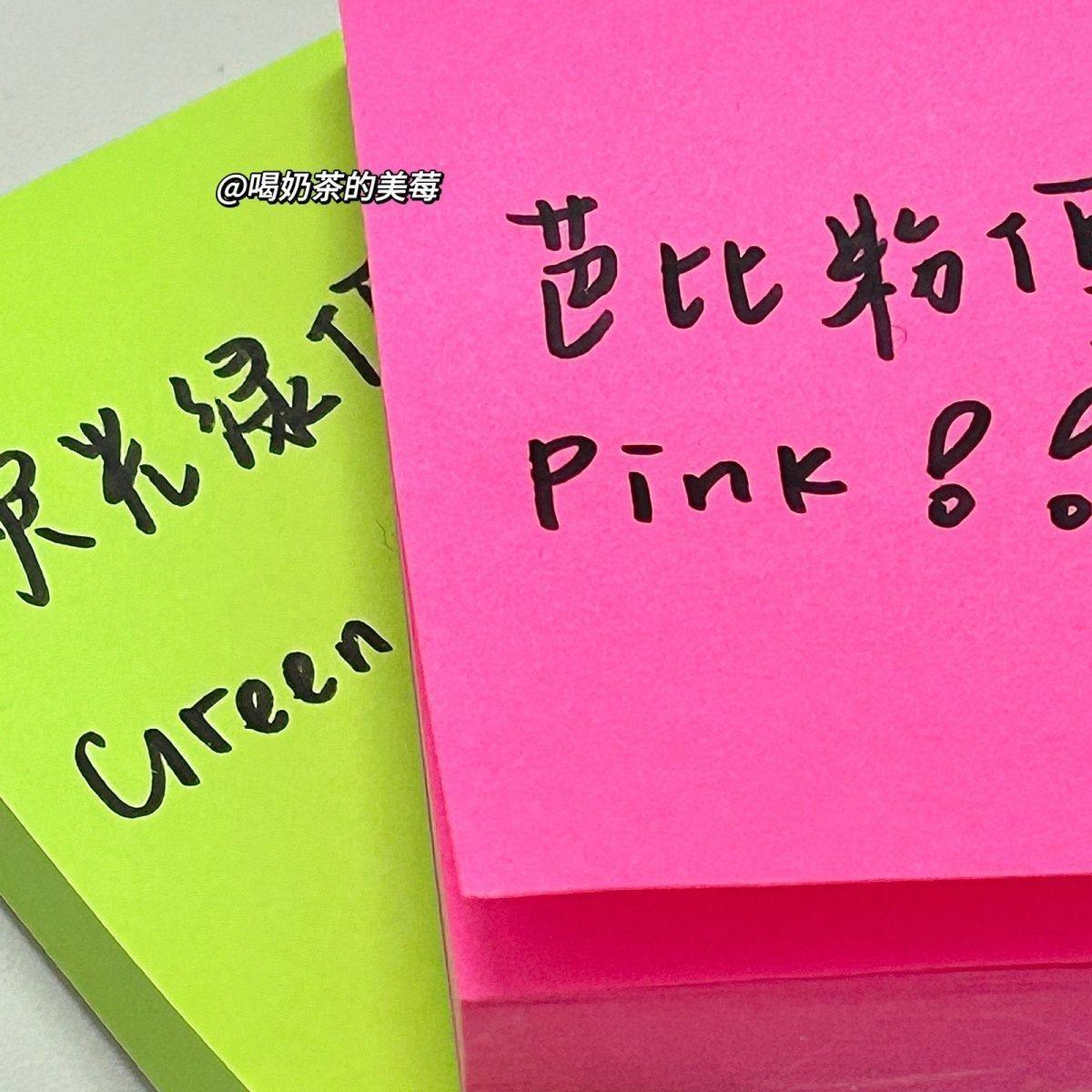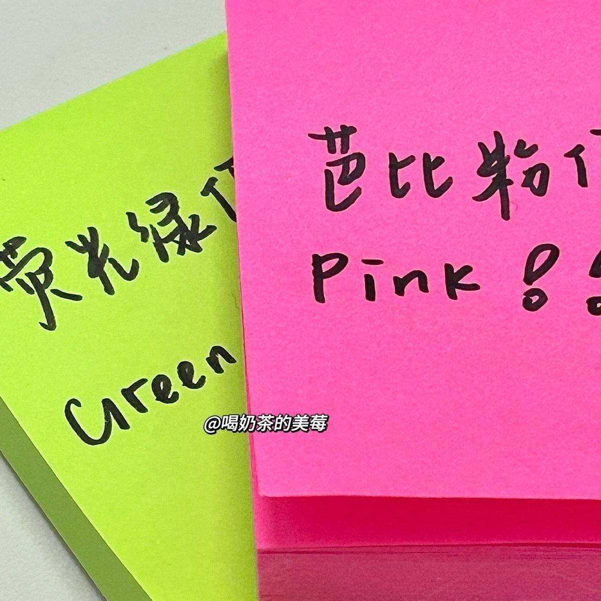 小红书同款荧光绿便签本50张芭比粉便利贴有粘性学生N次贴索引贴