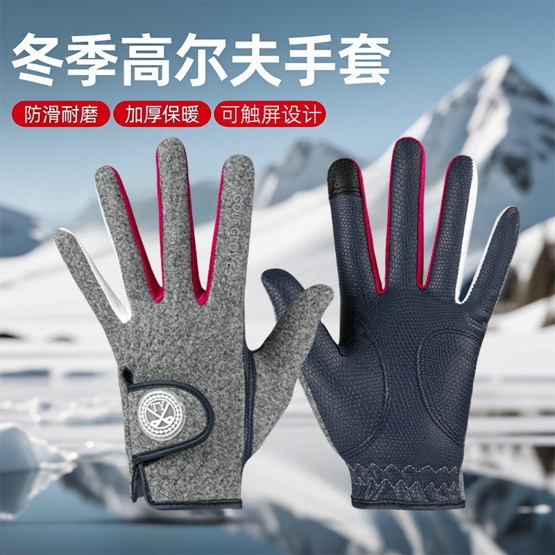 高尔夫手套女士冬季加厚保暖防滑手套防风户外骑行手套双手可触屏