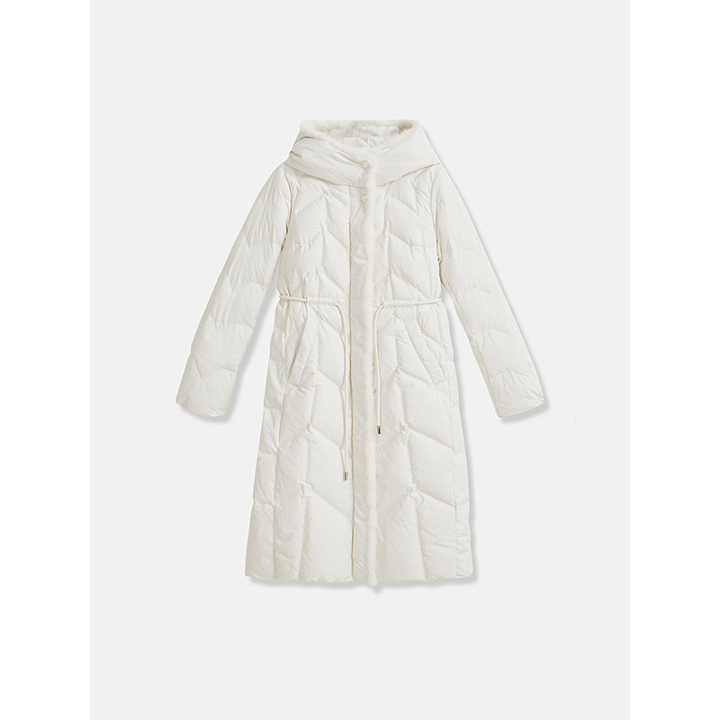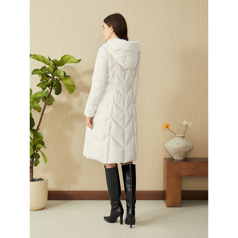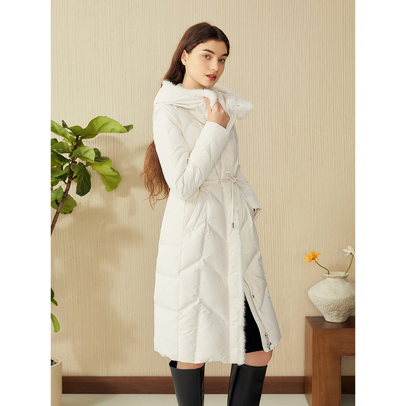 YINER音儿专选2025春季新款时尚长款加厚保暖水貂毛条连帽羽绒服