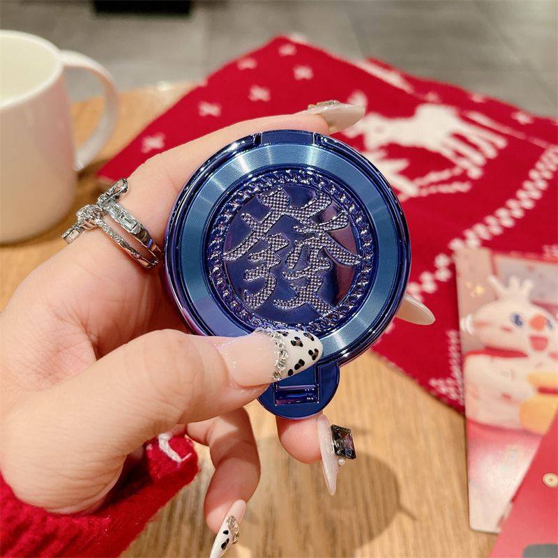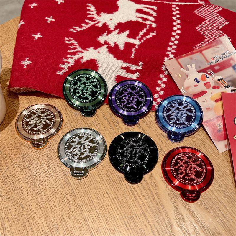 陀螺旋转通用手机支架新年款红色手机便携背贴扣创意固定坚桌面撑环立起专用稳固支架蛇年