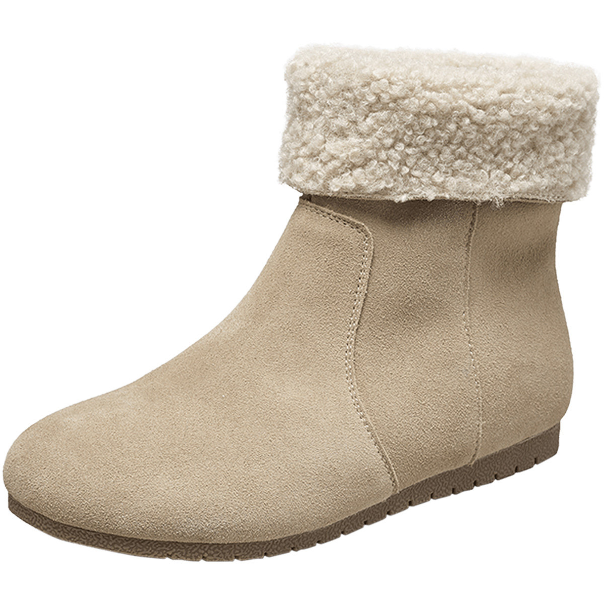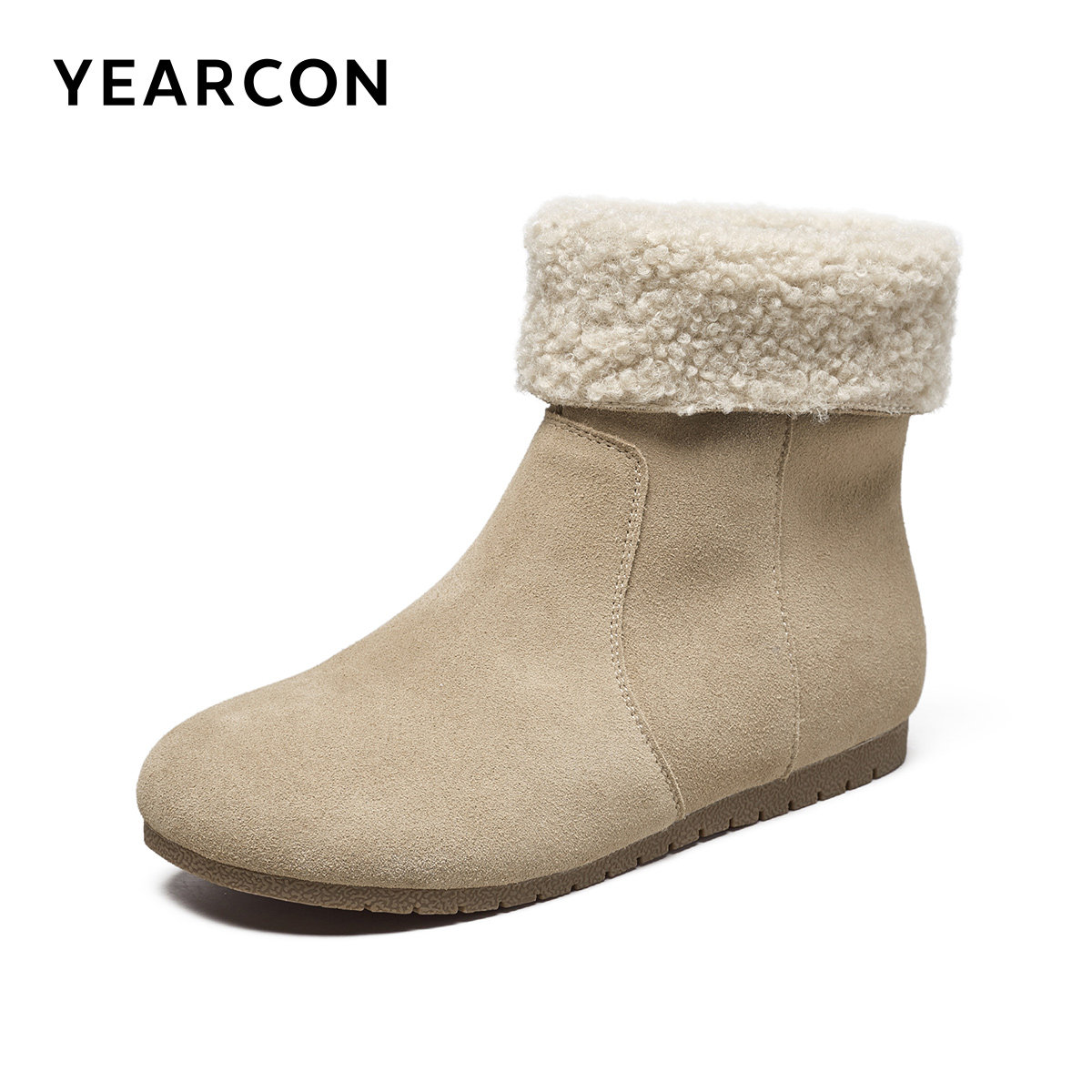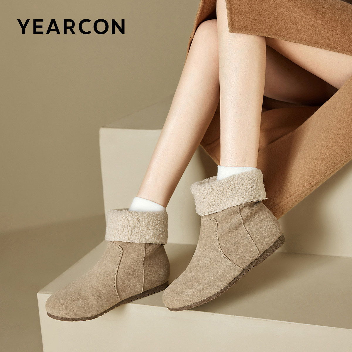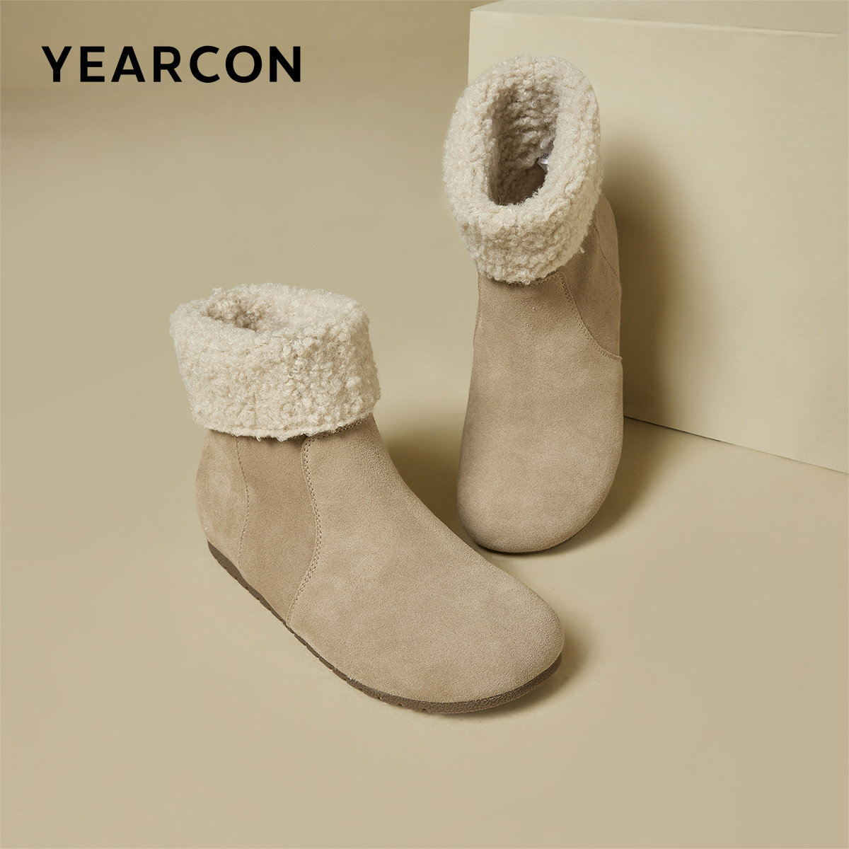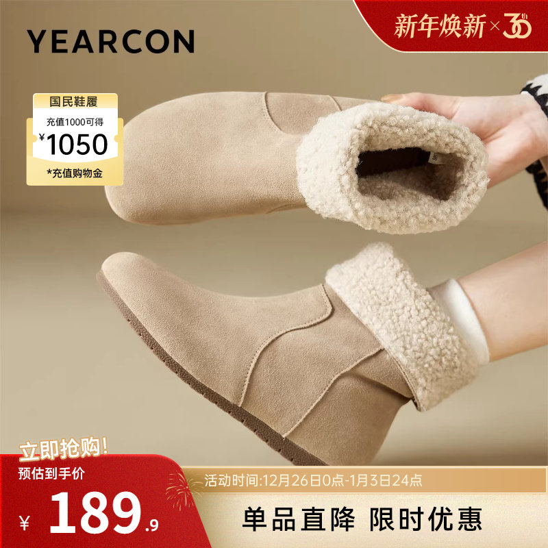 意尔康女鞋冬季毛毛鞋加绒保暖棉鞋平底短筒雪地靴户外休闲短靴