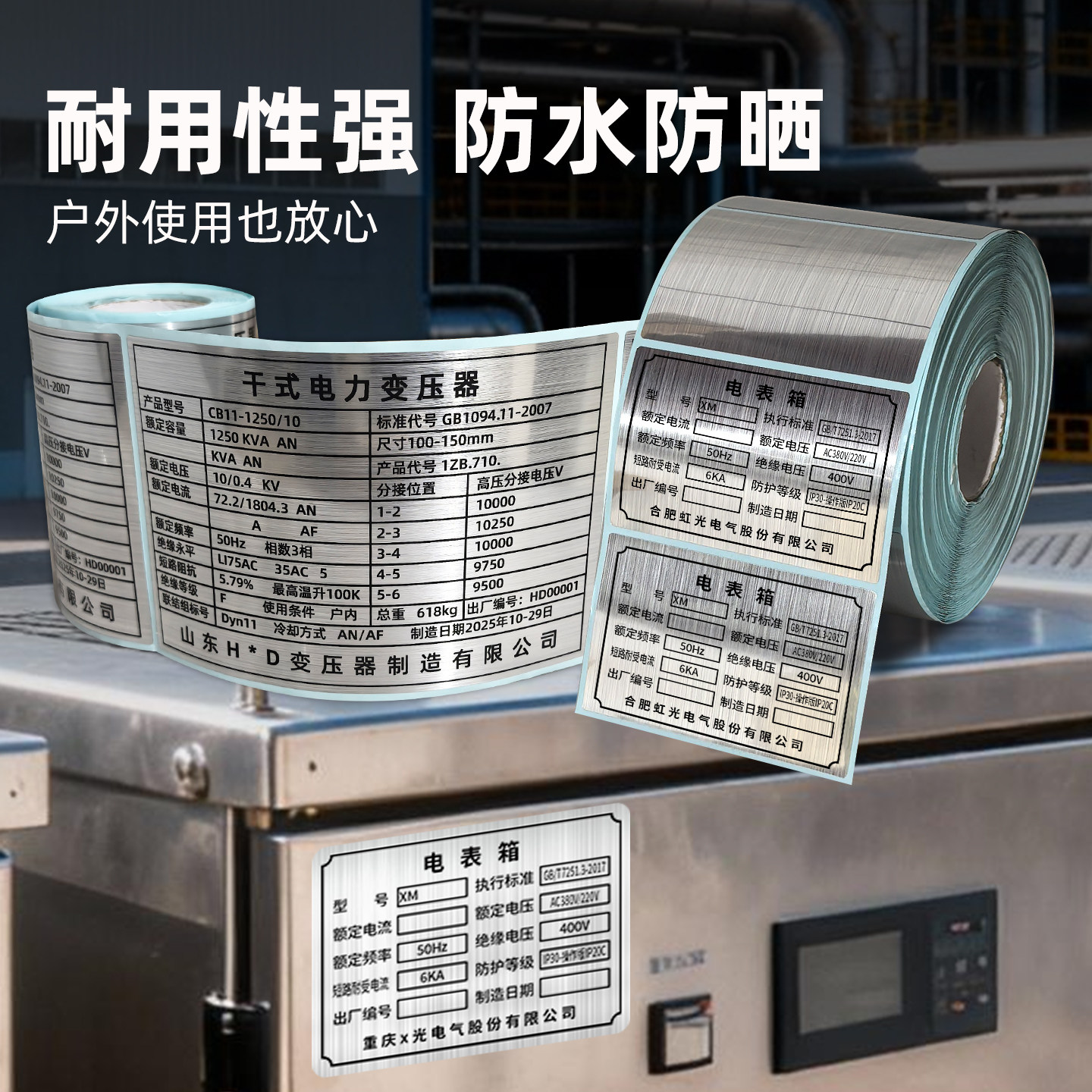 铭牌定制仿金属光银拉丝机器设备配电箱标识标牌定做防水防油贴纸