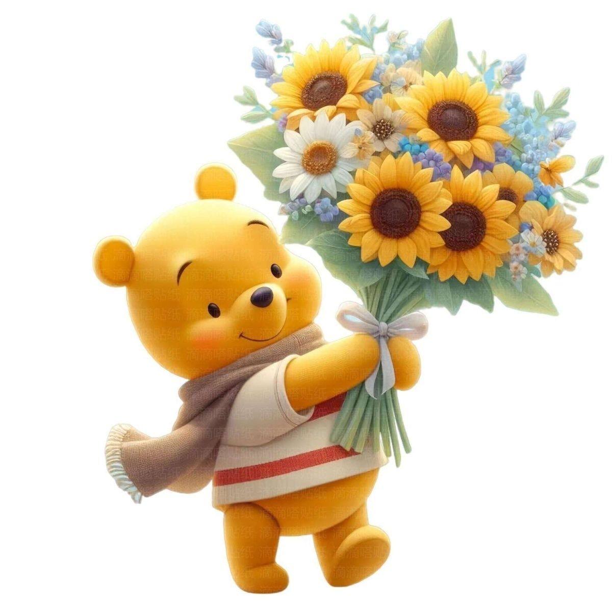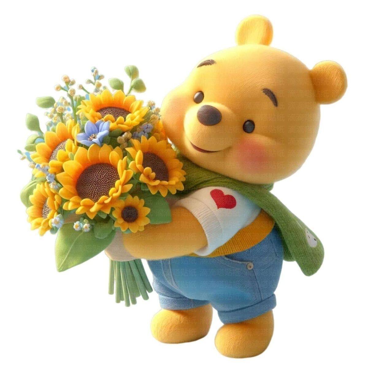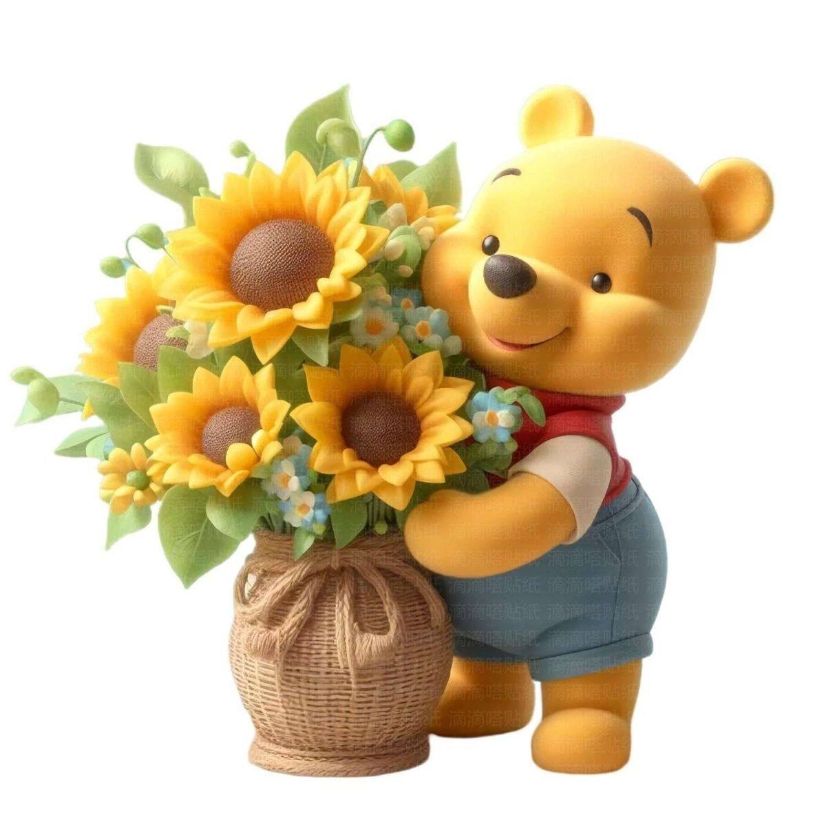 可爱小熊贴画卧室客厅冰箱电脑电动摩托汽车向日葵维尼熊个性贴纸